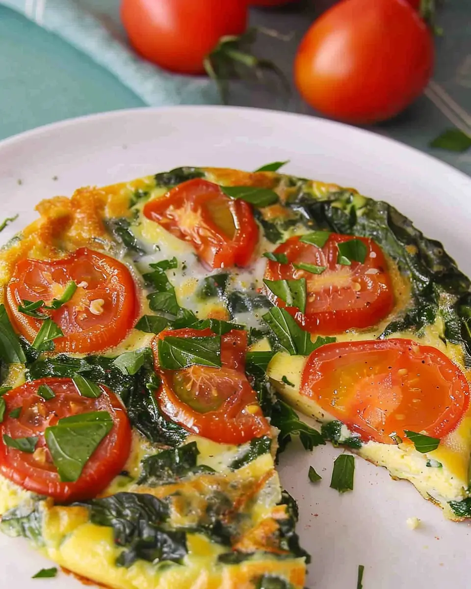 Start your day with this delicious and nutritious Air Fryer Spinach and Tomato Frittata, perfect for a healthy breakfast.