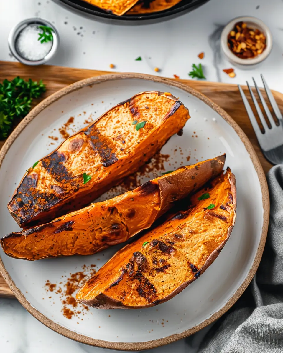 These sweet potatoes are perfect alongside a juicy steak or as a stand-alone dish. Enjoy them with a refreshing lemon-infused iced tea or a zesty citrus salad. What’s your favorite way to enjoy sweet potatoes? Share your thoughts and favorite pairings in the comments below!