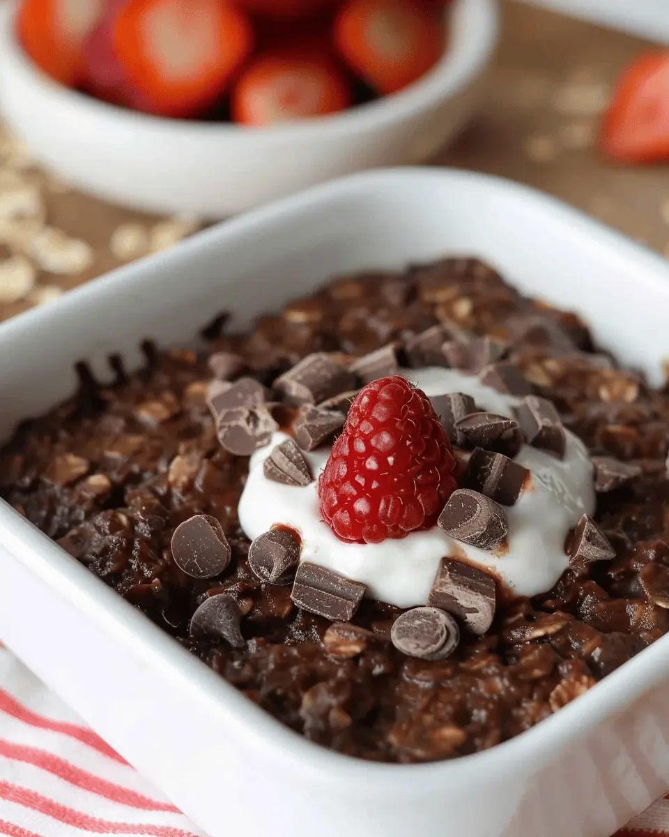 Absolutely! Baked chocolate oatmeal is an excellent choice for meal prepping. You can make a batch at the beginning of the week and have a delicious, wholesome breakfast ready to go every morning. Simply portion it out into containers and stick it in the fridge. Reheat and enjoy, adding your favorite toppings each time. It’s not just convenient; it also helps you resist the temptation of unhealthy breakfasts when you’re busy!