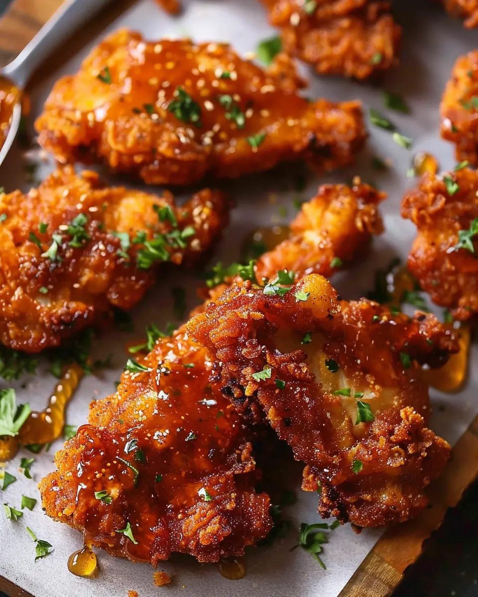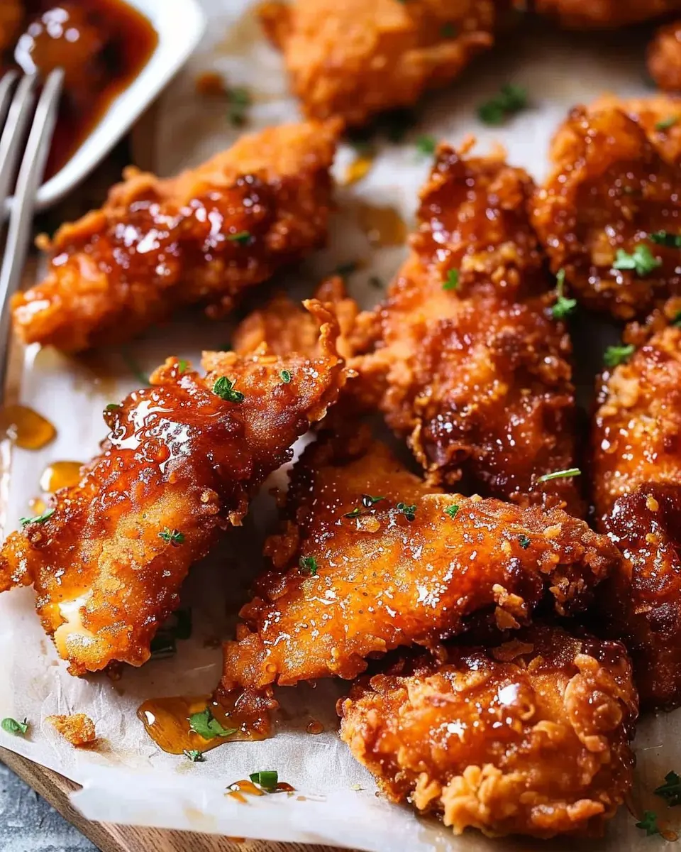 Once out of the oven, drizzle the hot honey over the crunchy chicken pieces and serve them with your favorite sides—think crisp salad or oven-roasted veggies. Be prepared; this dish might just become a staple at your gatherings.
