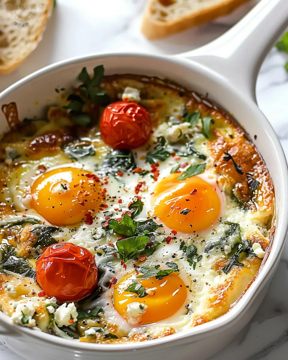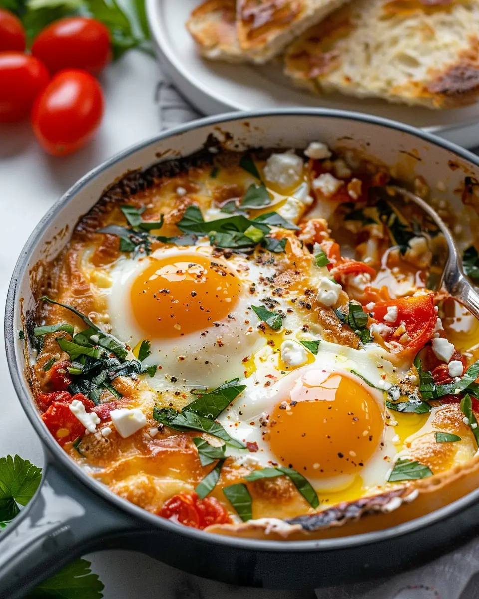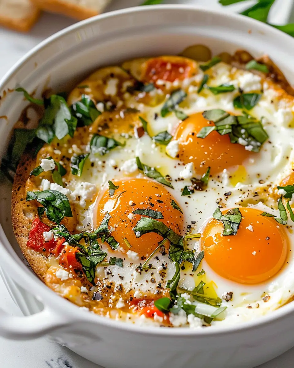 With everything set, it’s time to slide your dish into the oven. Bake for 20-25 minutes, or until the eggs reach that desired level of doneness. You want the whites to be set but the yolks slightly runny, which just adds to the dish’s overall allure. When you pull it out, let the tantalizing aroma envelop you — it’s irresistible! You can serve your Baked Feta Eggs directly from the baking dish with crusty bread for dipping or a side salad for a refreshing contrast.