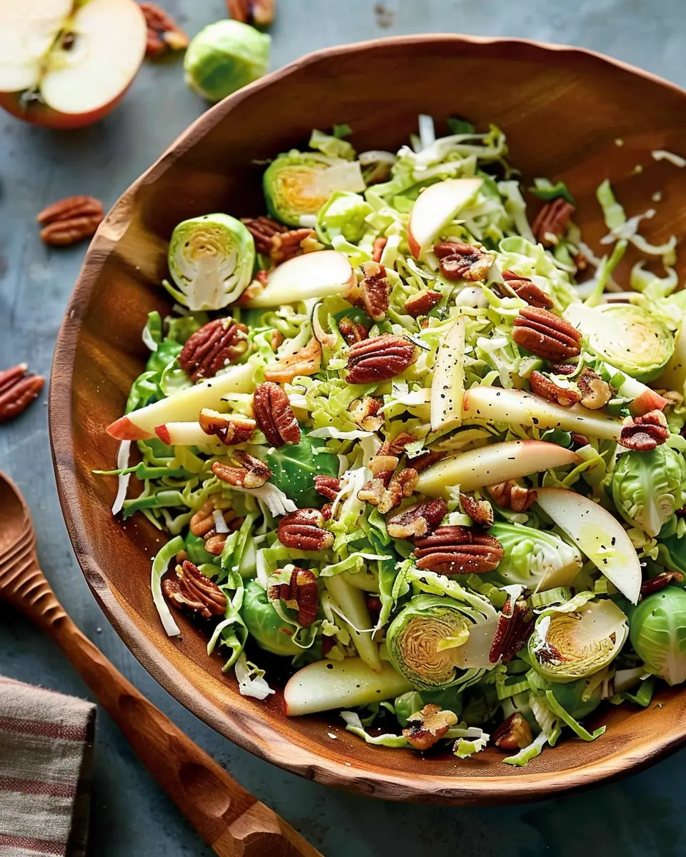 Packed with fiber, Brussels sprouts offer about 4 grams per serving, promoting healthy digestion and keeping you satisfied longer. Plus, combined with the apples and pecans, you’re also getting a decent protein boost, with approximately 3 grams from the nuts alone, reinforcing the slaw’s nutrient density.