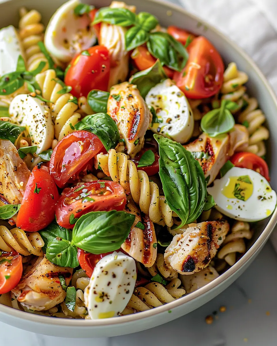 Enjoy a refreshing and satisfying Caprese Chicken Pasta Salad Bowl that combines fresh ingredients and vibrant flavors, perfect for summer days.