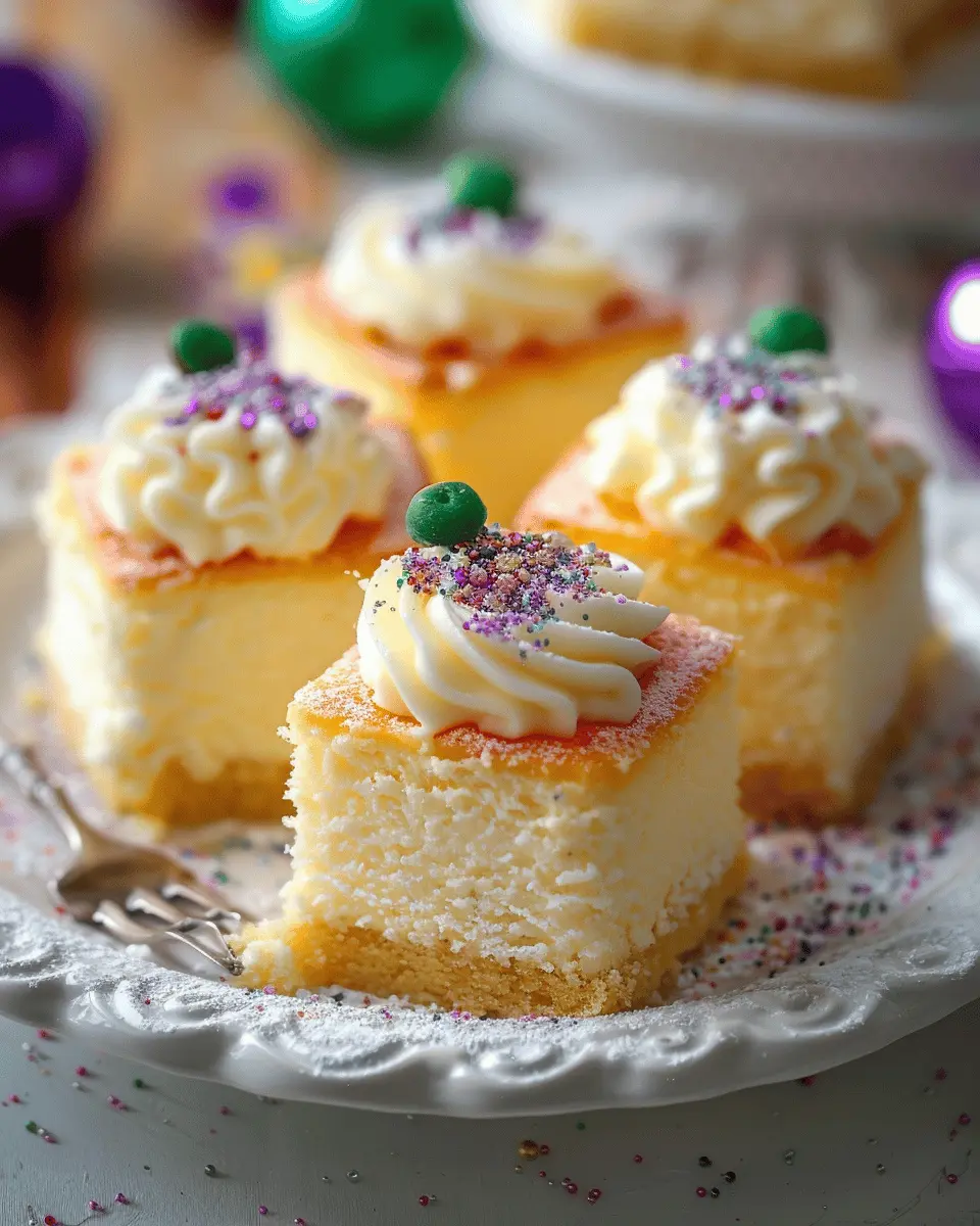 • Visual Appeal: The soft, pale color of these cheesecakes can be beautifully dressed up for the occasion. Add a dollop of whipped cream, some fresh berries, or a citrusy zest to brighten up the plate and complement the vibrant Mardi Gras decorations.
