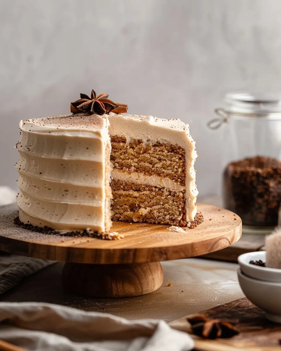 Top the whole cake with the remaining frosting, and you can even sprinkle some additional chai spice blend on top for that final touch—because why not show off a little?