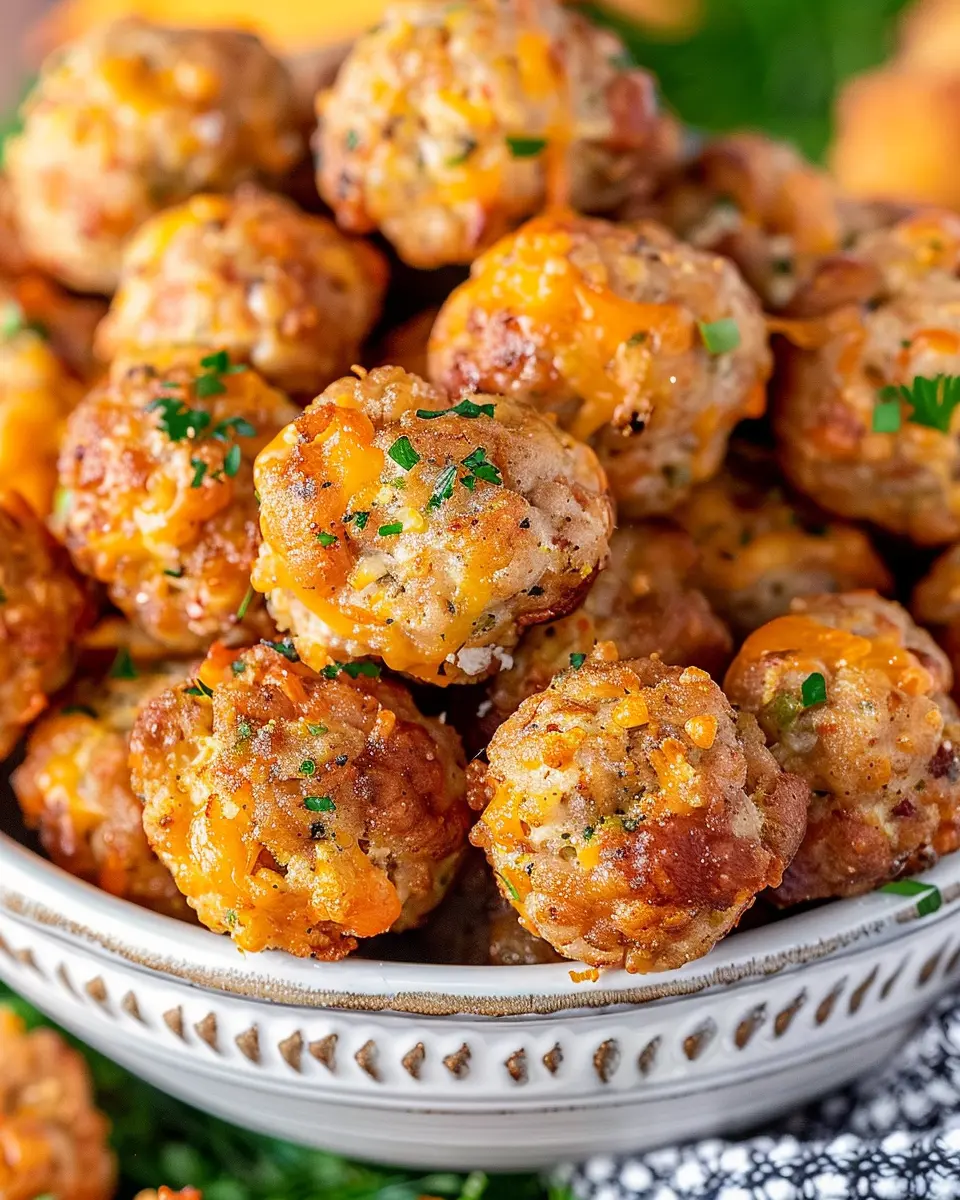 PrintCheddar Bay Sausage Balls Recipe: Indulgent Turkey Bacon Treats