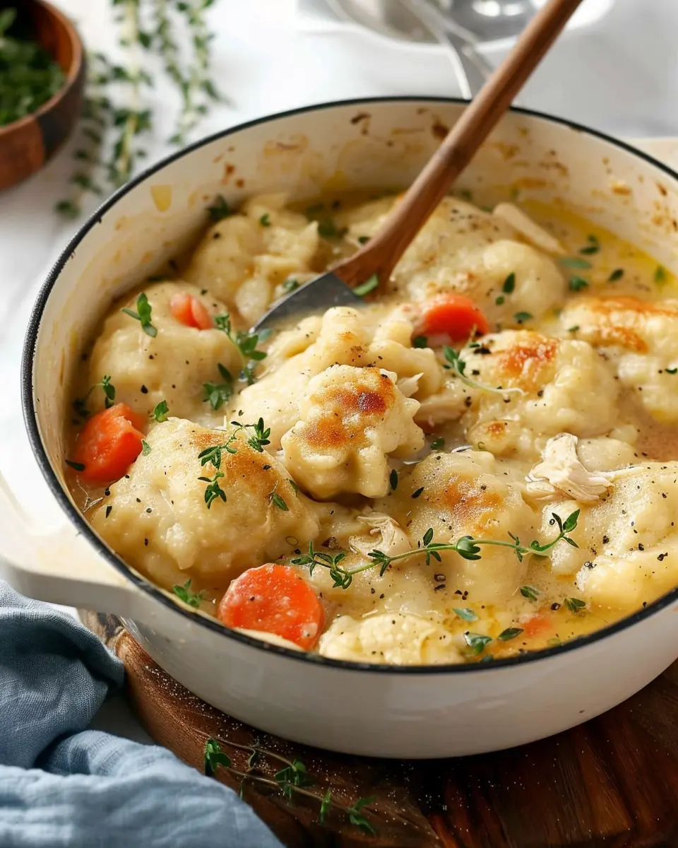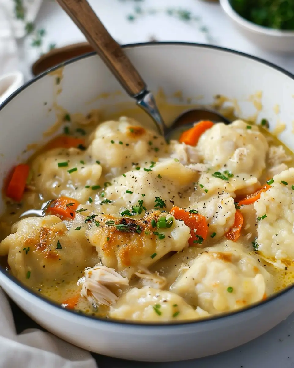 Indulge in this delicious and hearty Chicken and Dumplings recipe that will warm you from the inside out. Perfect for any home chef looking to create a comforting meal.