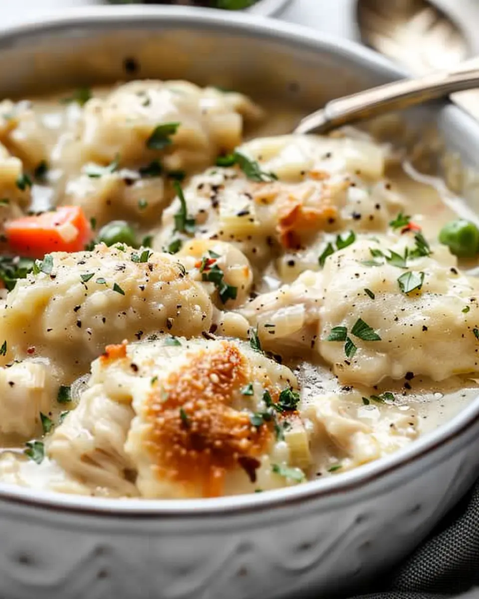Experience the ultimate comfort food with this Chicken and Dumplings recipe that will quickly become a family favorite.