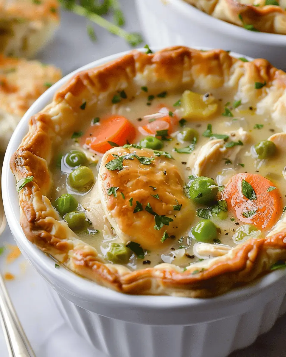 Presentation plays a big role in enhancing the dining experience. Consider serving your chicken pot pie soup in individual ramekins or small cast iron skillets for a rustic touch. Top your soup with a sprinkle of fresh parsley or chives for that pop of color. If you want to impress, serve it alongside a small charcuterie board featuring crunchy veggies, turkey bacon bites, and chicken ham slices. This elevates your meal into a delightful gathering that friends and family will remember!