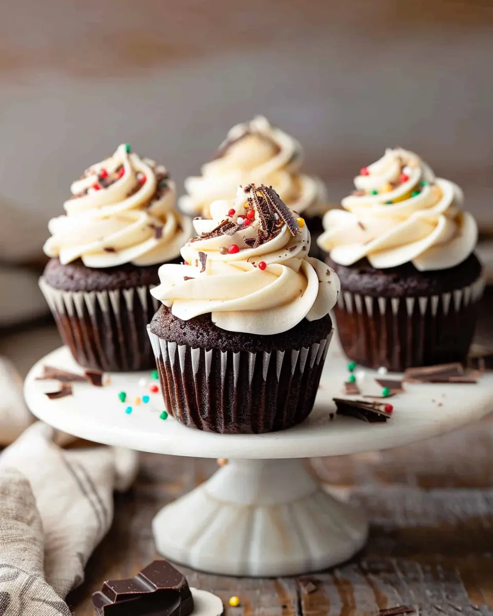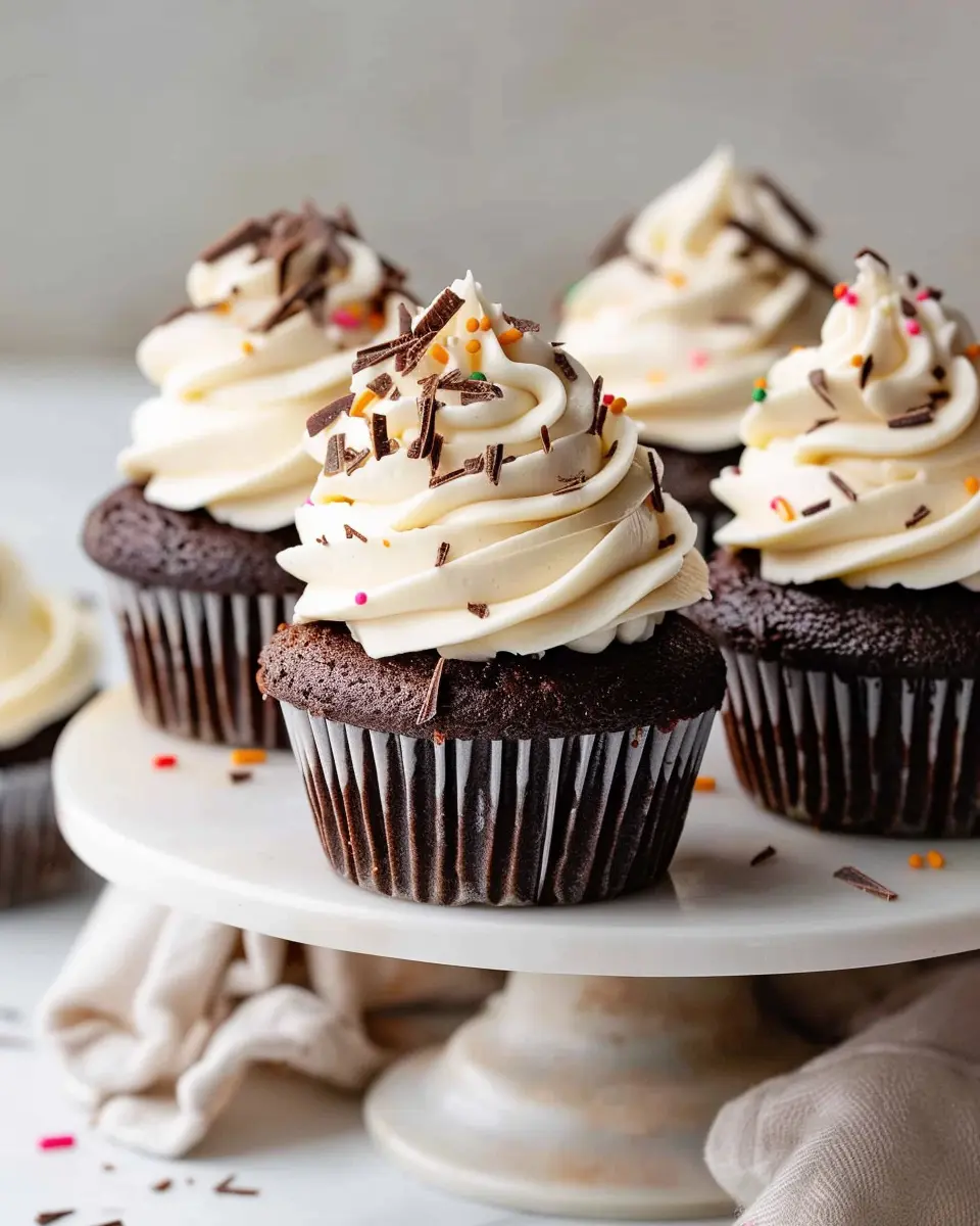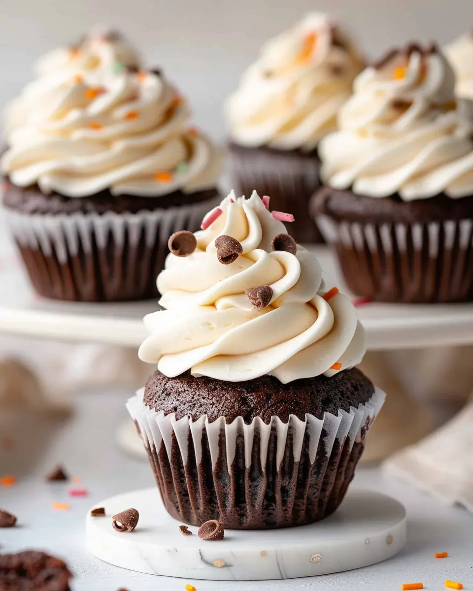 Now for the best part! Once your cupcakes are cool, grab a piping bag or simply a knife to spread that frosting on top. If you’re feeling creative, try different decorating techniques—swirls, peaks, or even sprinkles. You could also add chocolate chips, fruit, or nuts for a special touch. The beauty of these chocolate cupcakes with vanilla frosting is they can be customized to fit any occasion!