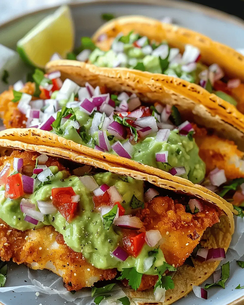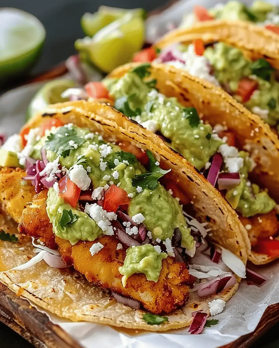 Discover the fresh and delightful Crispy Baja Fish Tacos topped with creamy avocado for a perfect meal.
