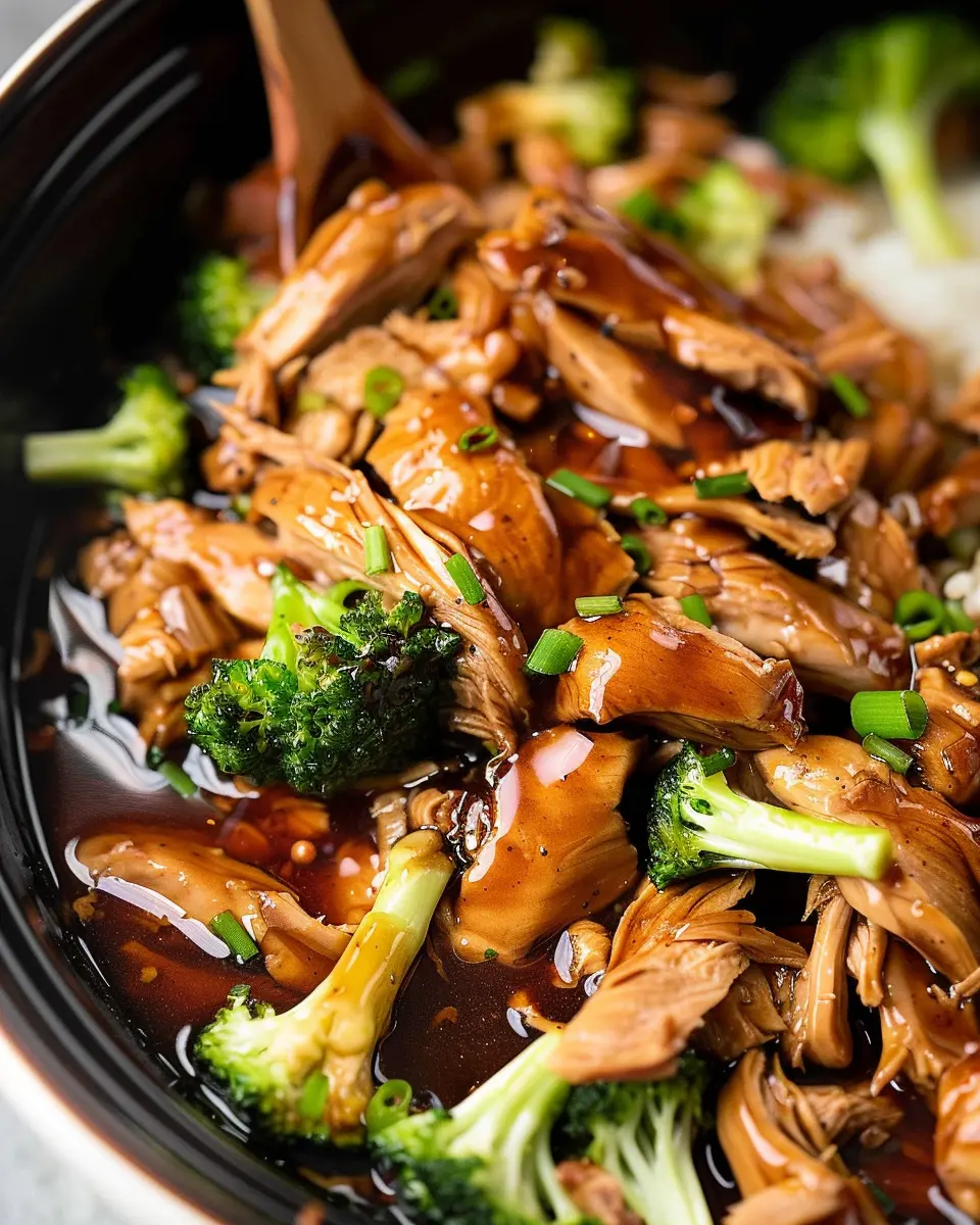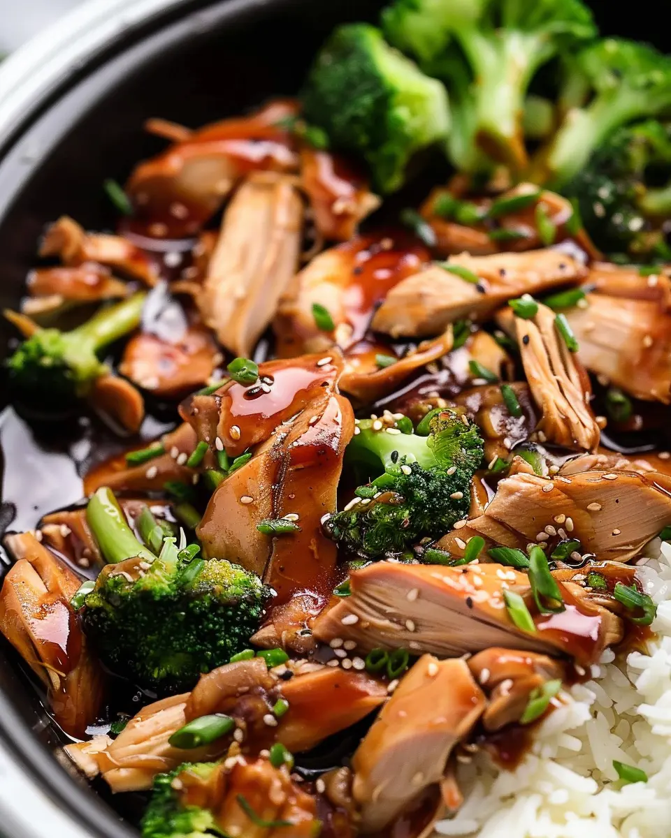 Finally, return the shredded chicken to the Crock Pot, stirring it into the thickened sauce until well combined. Serve your delicious Crock Pot Teriyaki Chicken over rice or noodles, and top with sesame seeds and chopped green onions for that extra flair.