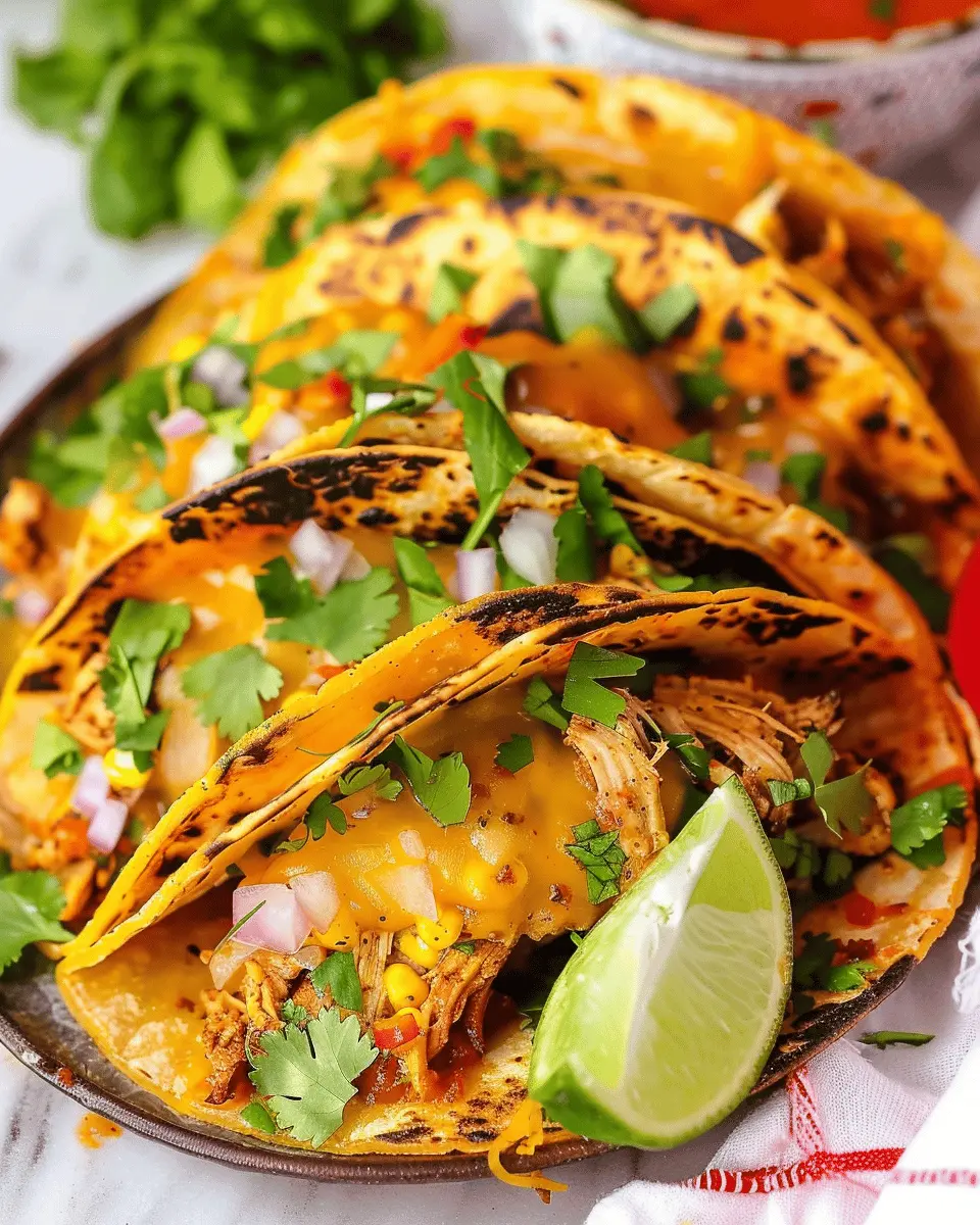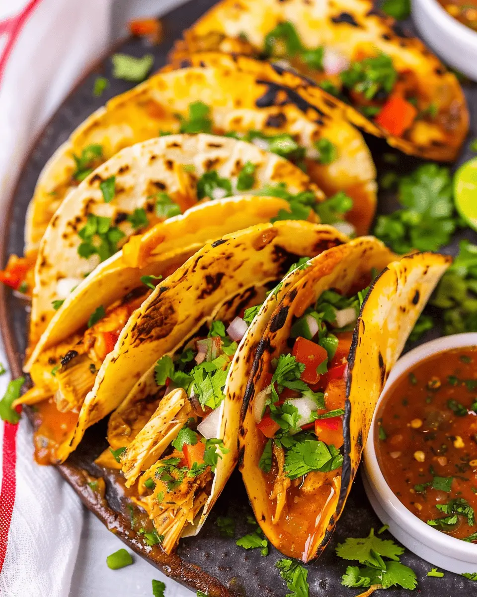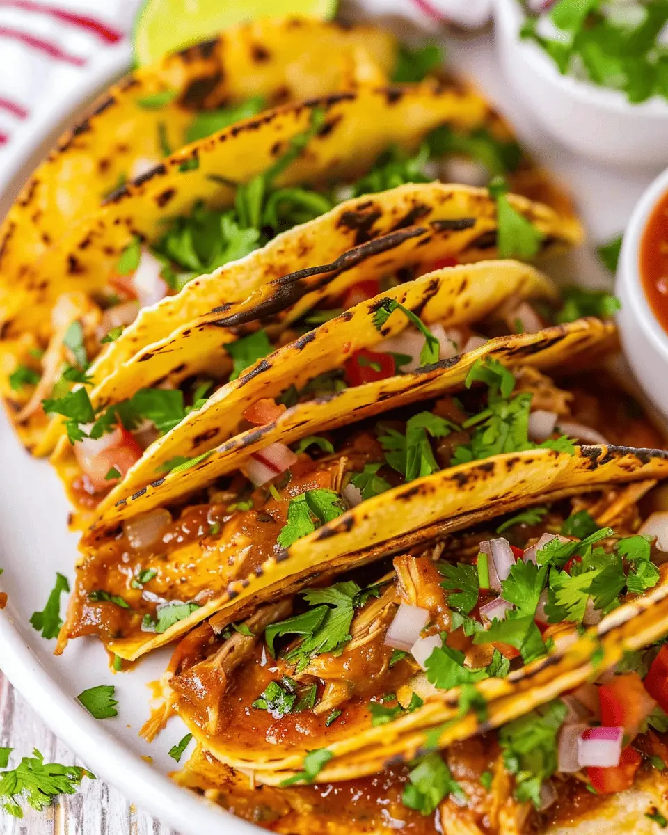 Serve your tacos with fresh cilantro, diced onions, and lime wedges for an explosion of flavor. Enjoy your culinary journey with these irresistible tacos!