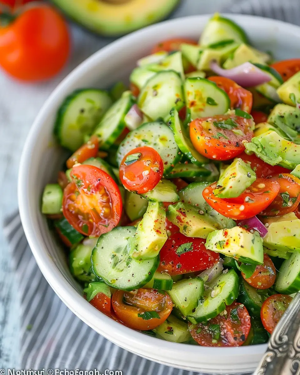 Keywords: Cucumber, Tomato, Avocado, Salad, Refreshing, Healthy