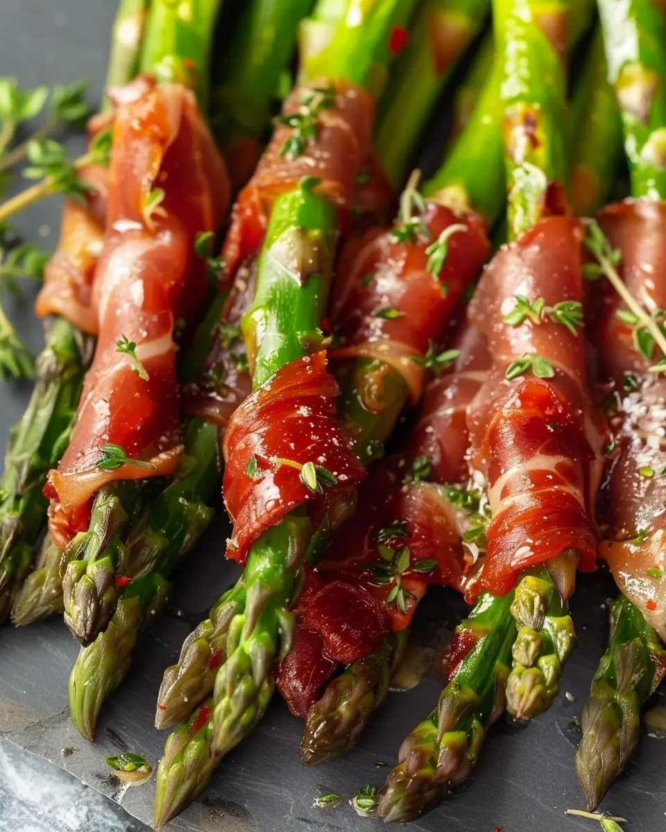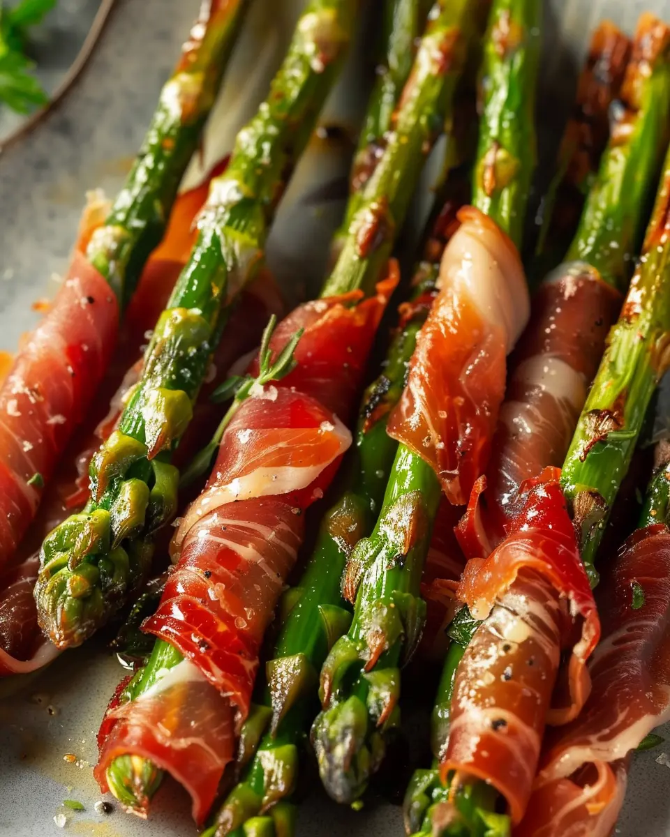 Asparagus is packed with vitamins A, C, E, and K, as well as minerals like iron and calcium. All this comes with a low calorie count, making it an excellent vegetable choice. By wrapping them in aromatic prosciutto, you elevate their flavor profile while keeping the dish light.