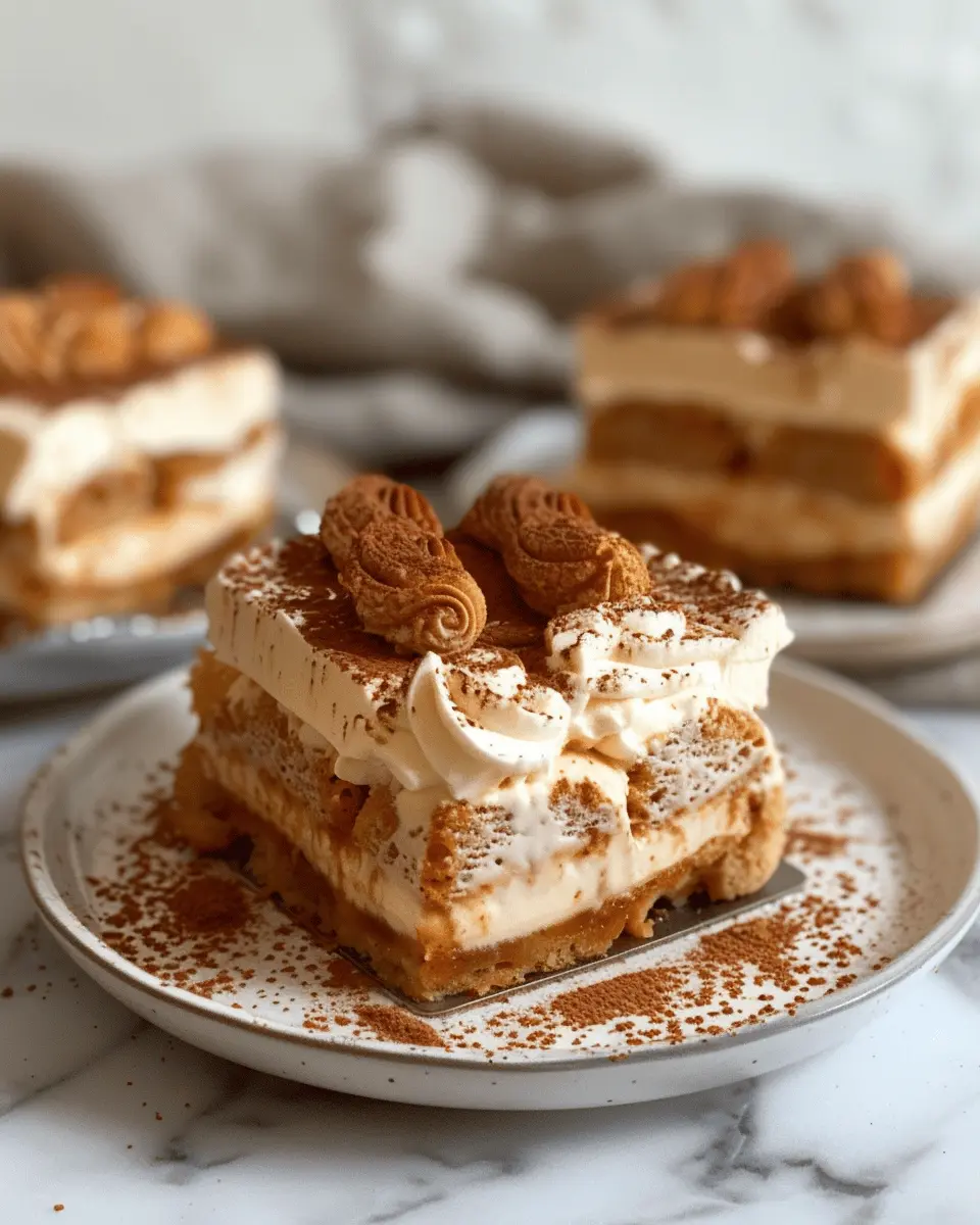 If you’re a fan of the traditional tiramisu, you’ll be thrilled to discover how seamlessly the Biscoff flavor fits into the classic recipe. Start by layering Biscoff cookies soaked in a mixture of brewed coffee and a splash of almond milk. For the creamy filling, combine mascarpone cheese with whipped cream and a dollop of Biscoff spread. This simple substitution transforms the standard tiramisu into an indulgent dessert you’ll want to serve at every gathering!