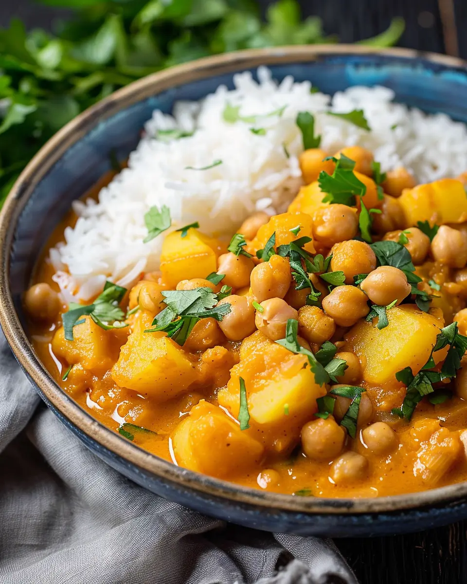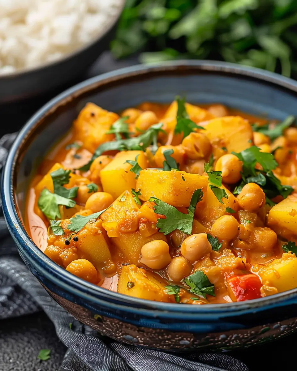 A flavorful and easy-to-make chickpea and potato curry that is perfect for any home cook.
