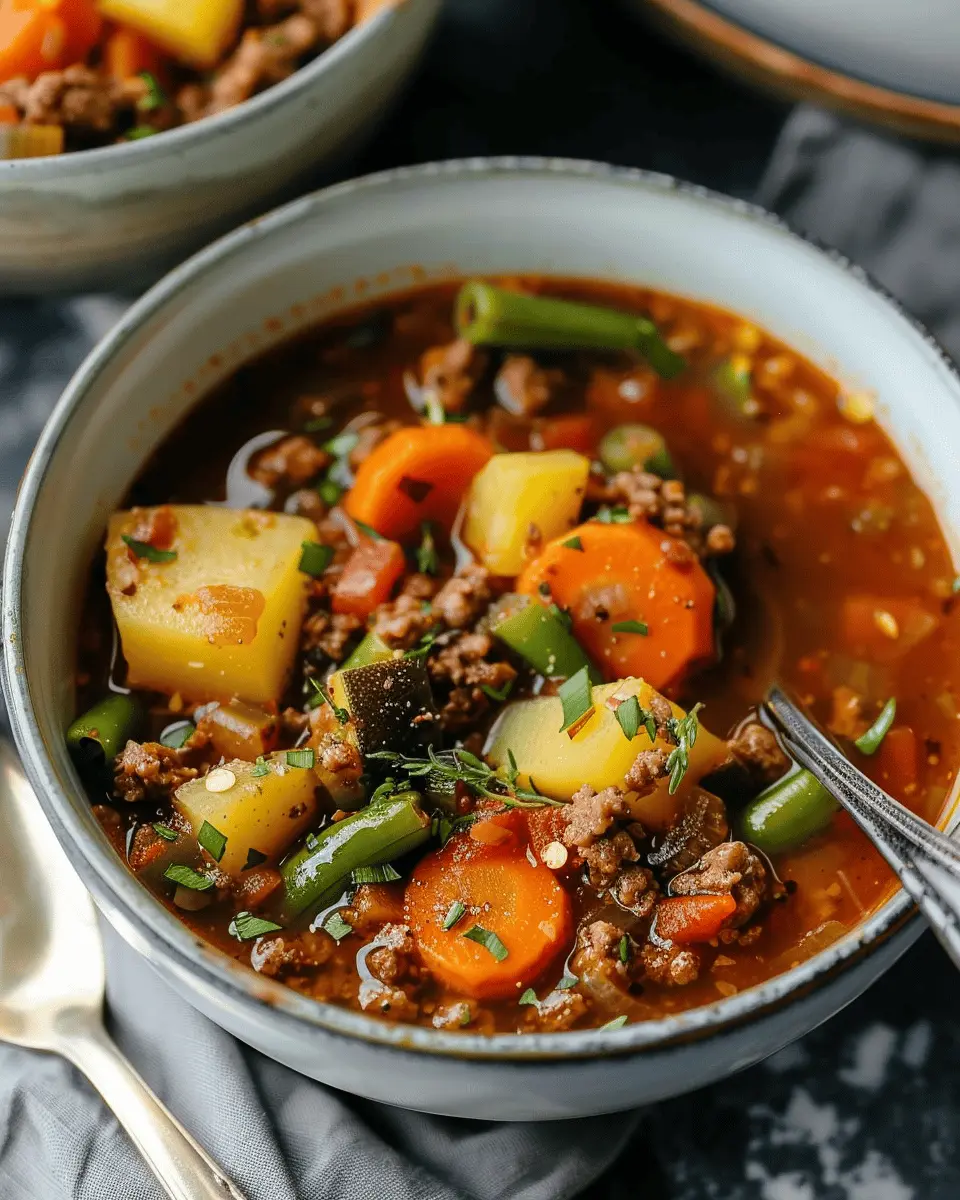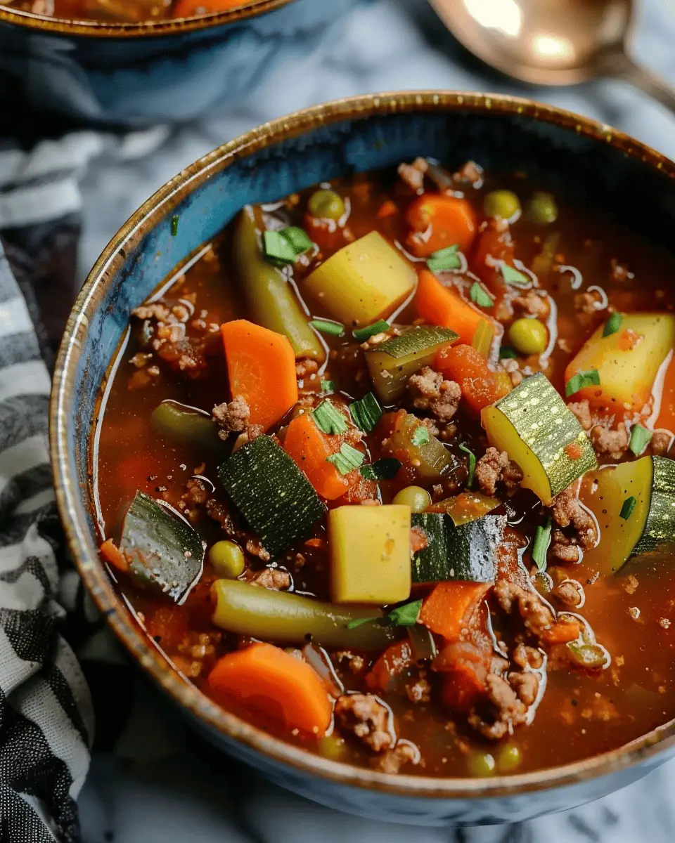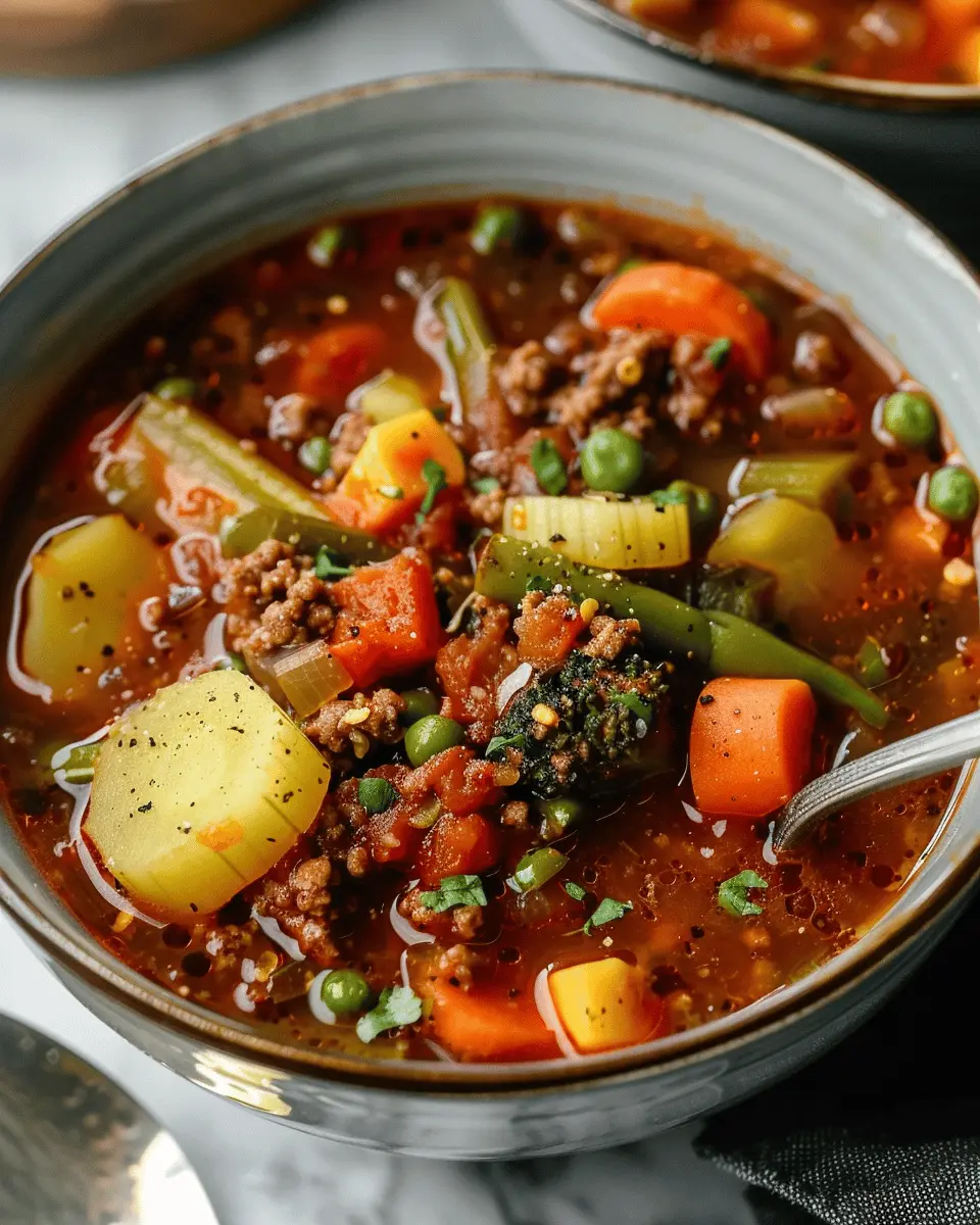 This Easy Hamburger Vegetable Soup is a delightful mix of flavors and nutrients, perfect for a comforting dinner.
