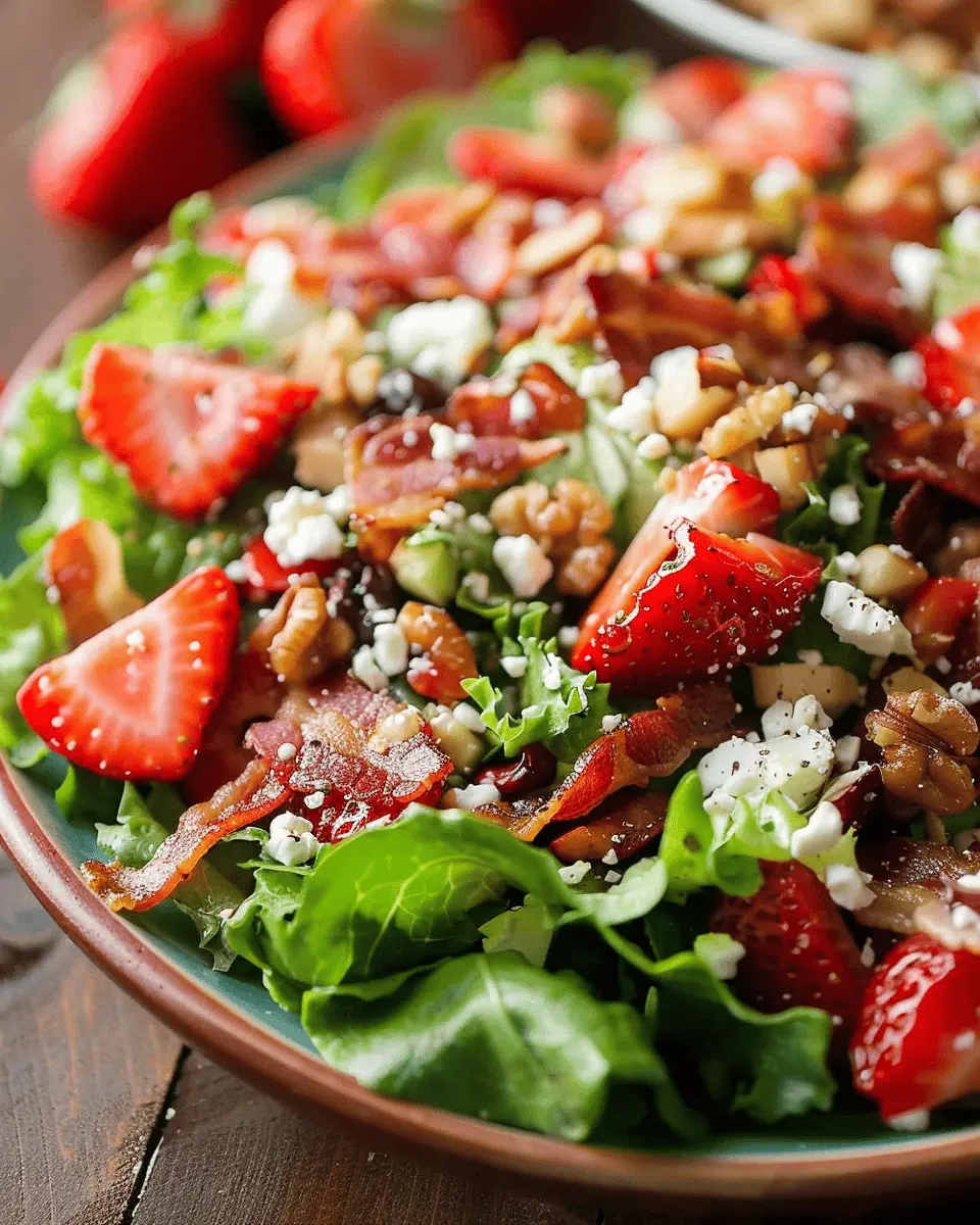 Experience the delightful combination of sweet strawberries, savory turkey bacon, and fresh greens in this Favorite Strawberry Turkey Bacon Salad. A perfect dish for any occasion!