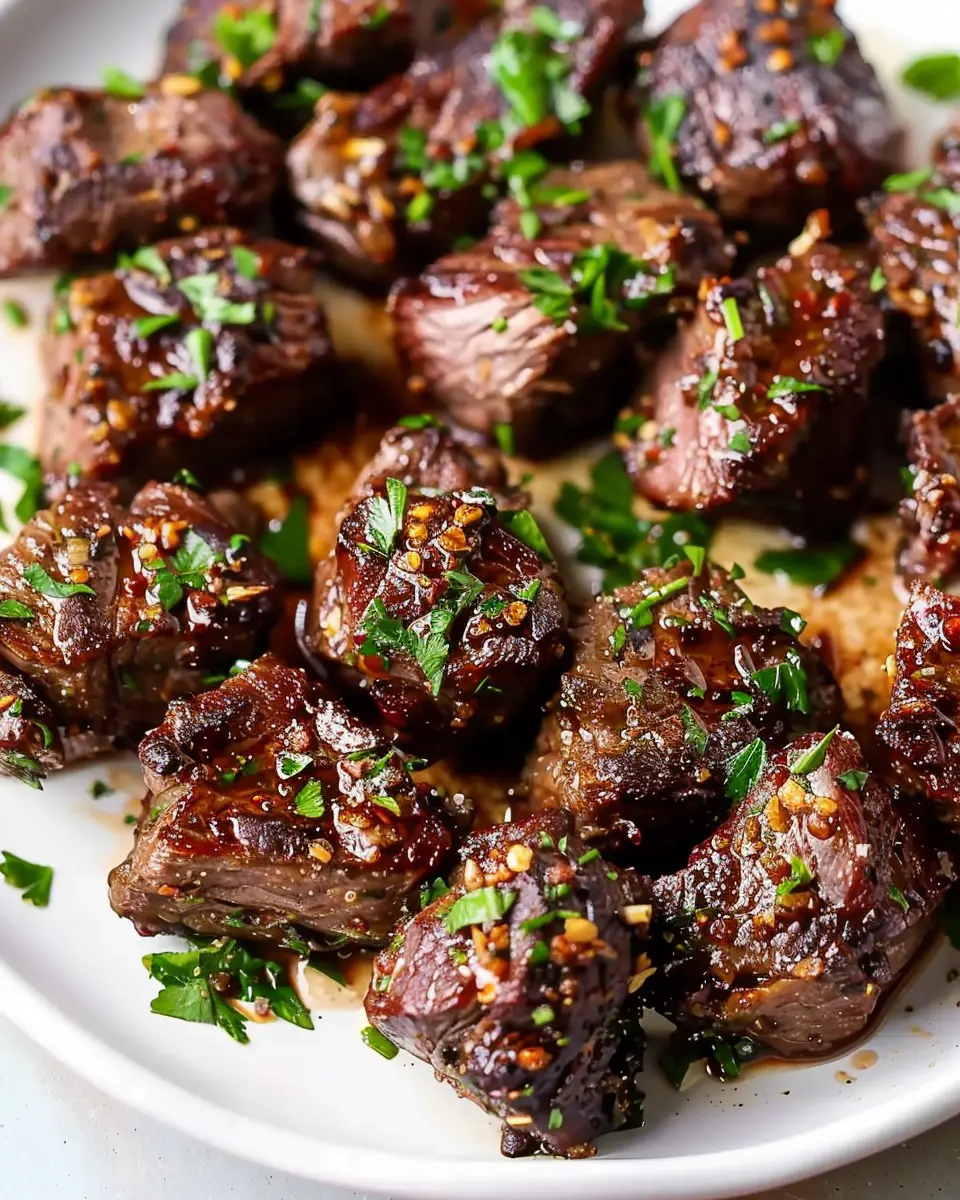 Serving: Transfer your Garlic Butter Steak Bites to a plate, and garnish with freshly chopped parsley, if desired, for a pop of color. These bites can be served alone or over a bed of mashed potatoes or rice.