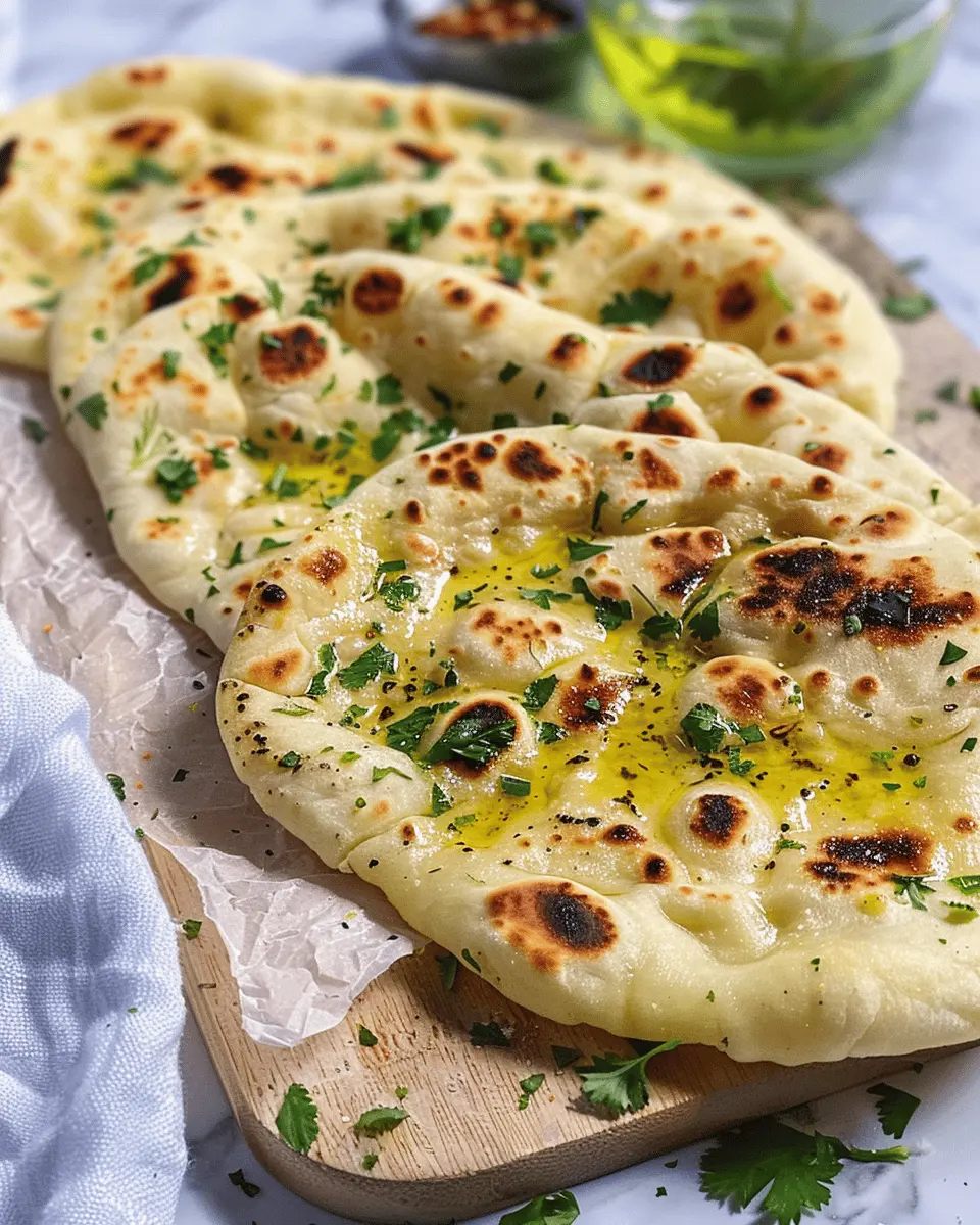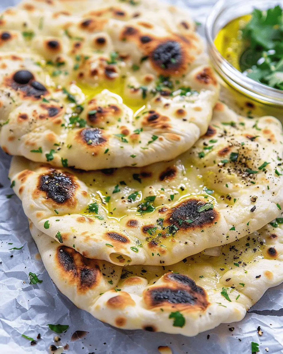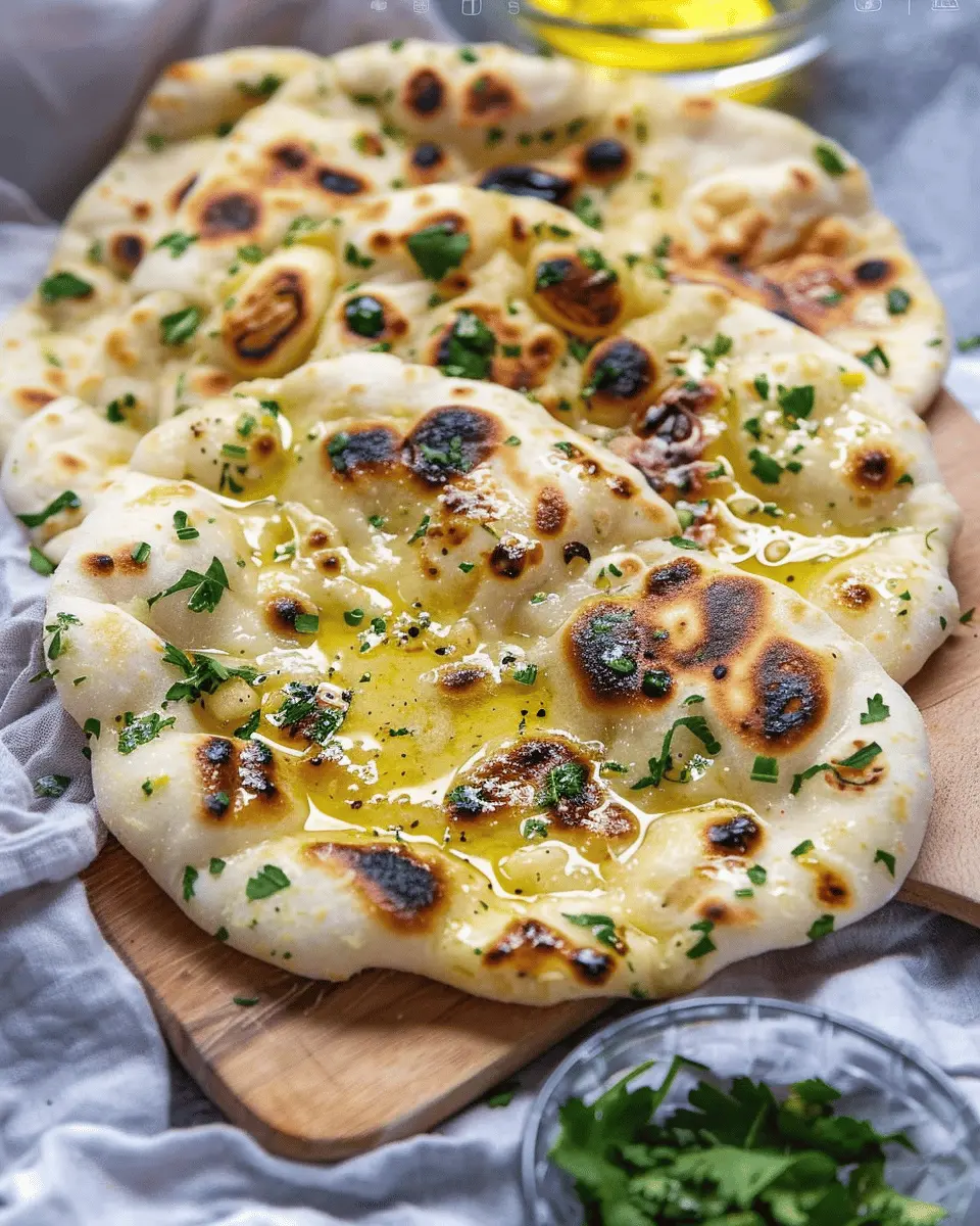 Enjoy the delightful taste of homemade Garlic Naan, a beloved Indian bread perfect for food lovers.