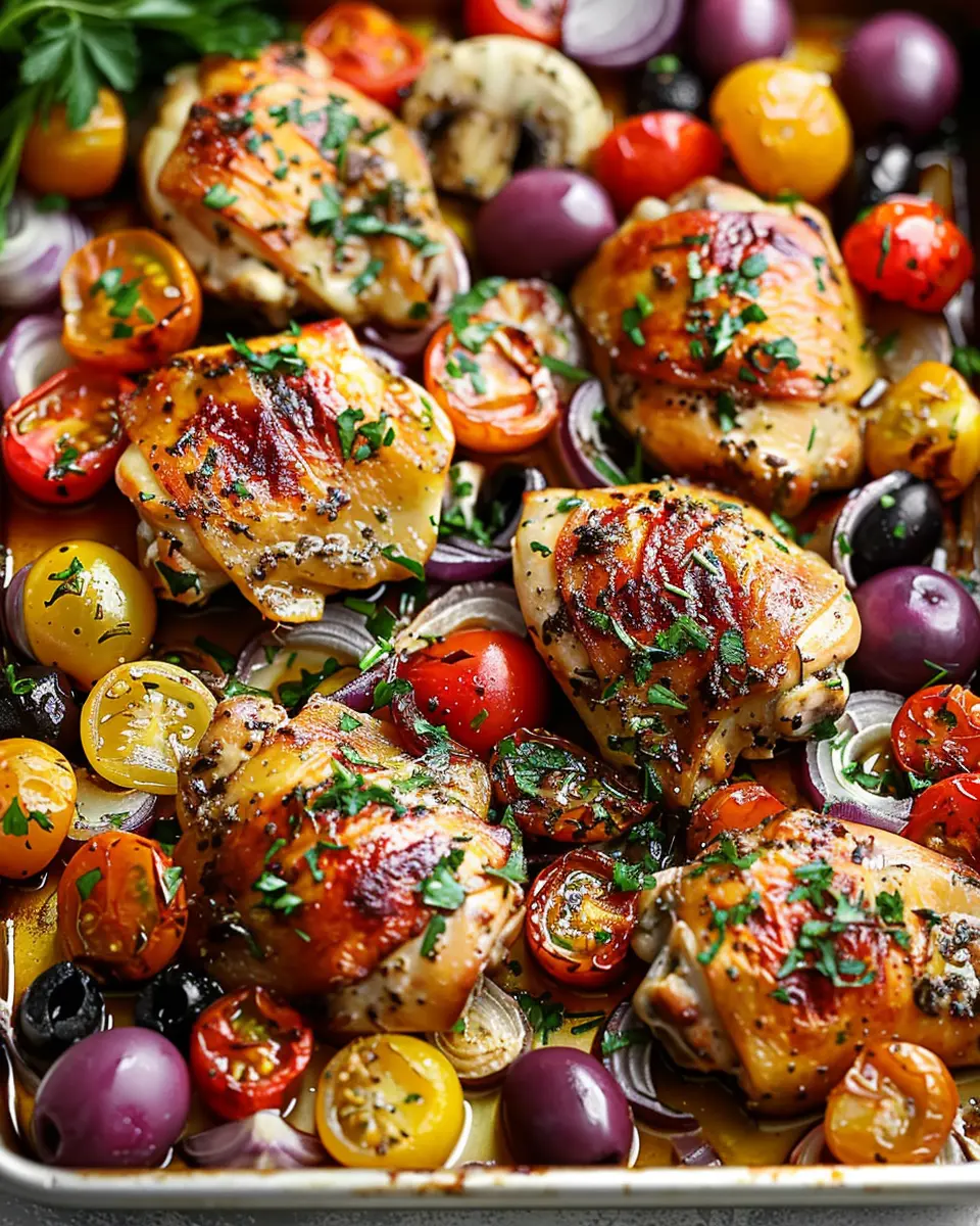 Prepare a delightful and easy Greek Sheet Pan Chicken dish that’s bursting with flavor and perfect for a quick weeknight dinner.