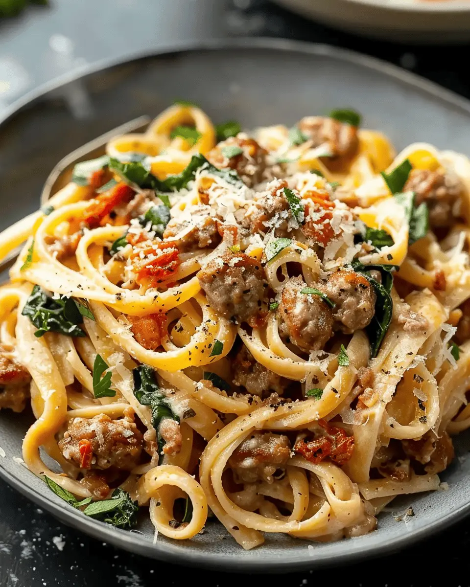 PrintHealthy Creamy Tuscan Sausage Pasta: A Wholesome Family Favorite
