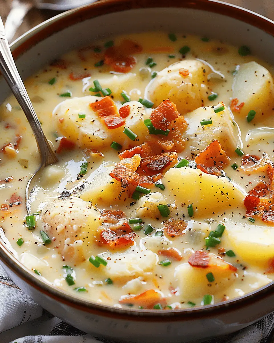 When the weather turns chilly and your schedule is packed, there’s nothing quite as satisfying as a warm bowl of homemade soup. This hearty and creamy crockpot potato soup with turkey bacon is the ultimate comfort food that does more than merely warm your belly—it warms your soul. The beauty of using a crockpot is that you can set it and forget it, making it perfect for busy weekdays or laid-back weekends.