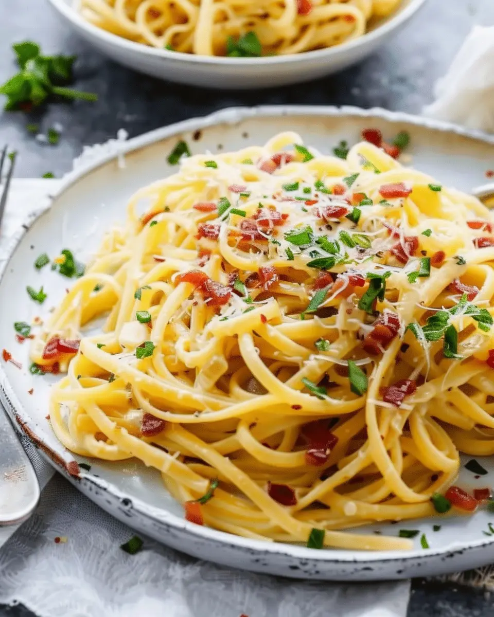 Garnishes can transform your Instant Pot Pasta Carbonara from simple to spectacular. Consider these options: