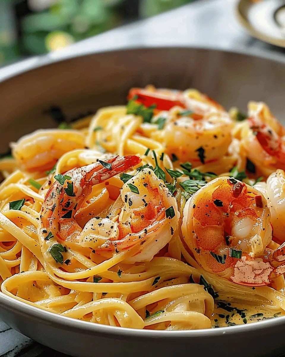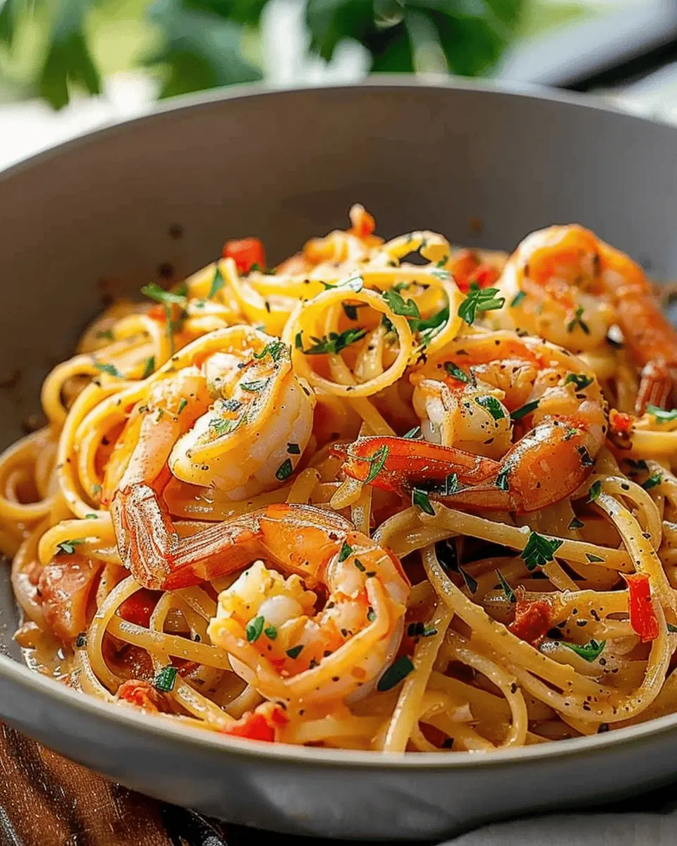 PrintJamaican Shrimp Pasta: A Creamy Delight with Turkey Bacon Twist