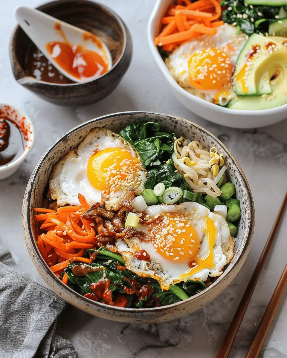 Absolutely! Making Korean Veggie Bibimbap Bowls vegan is a breeze. Simply replace any animal-based proteins with plant-based options. Tofu is a fantastic substitute—try marinating it in soy sauce or gochujang for extra flavor. You can enhance your dish with a variety of veggies like mushrooms, spinach, and carrots. For creaminess, top it with avocado or a dollop of sesame oil. If you’re looking for more vegan inspiration, check out this plant-based bibimbap recipe.