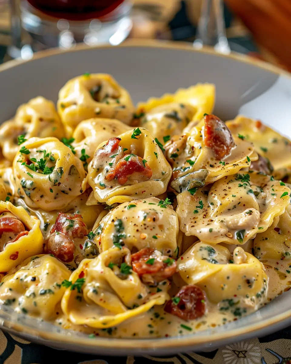 A creamy and delightful dish that combines chicken, tortellini, and a rich sauce, perfect for cozy dinners or special occasions.