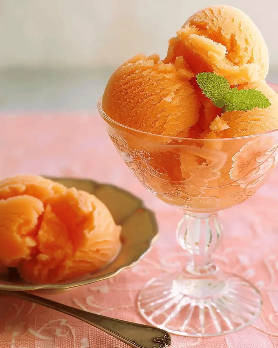 Keywords: melon sorbet, summer dessert, refreshing treat