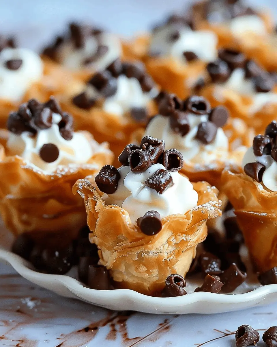 Mini Cannoli Cups are a delightful twist on the traditional Italian dessert, cannoli. Instead of the classic tube-shaped pastry filled with sweetened ricotta cheese, these bite-sized cups offer the same rich flavors in a fun and approachable format. Picture this: delicate, crisp pastry shells filled with a luscious mixture of ricotta, confectioners’ sugar, and vibrant chocolate chips, all elegantly presented in a little cup. They’re not just a feast for the palate but also for the eyes! If you’re a fan of desserts that deliver a combination of textures and flavors, Mini Cannoli Cups are sure to impress.
