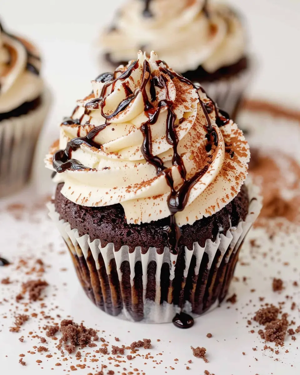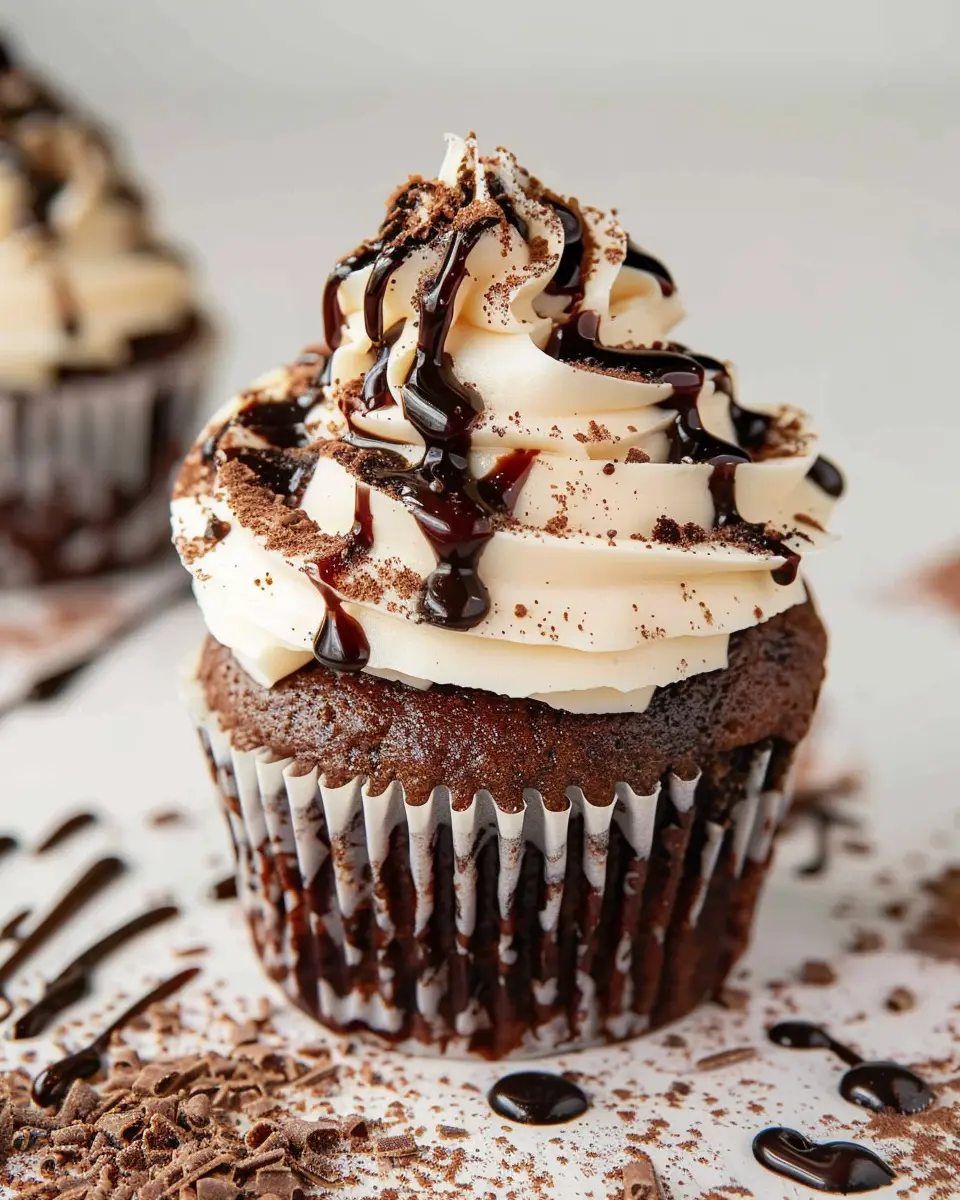 Indulge in the rich flavors of these Mudslide Cupcakes topped with luscious Baileys frosting, perfect for any chocolate lover.