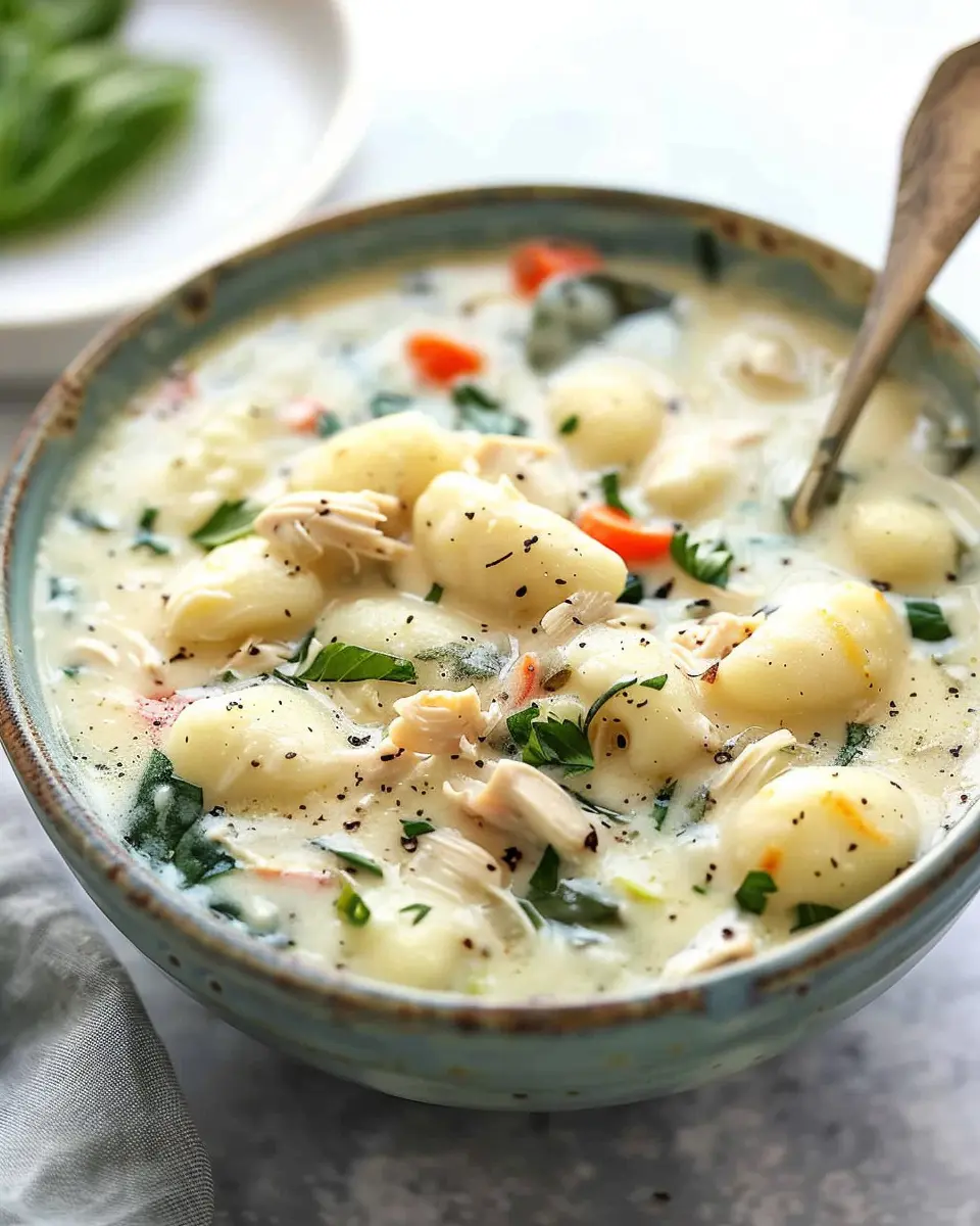 A warm and comforting Olive Garden-inspired chicken gnocchi soup that is easy to make at home.