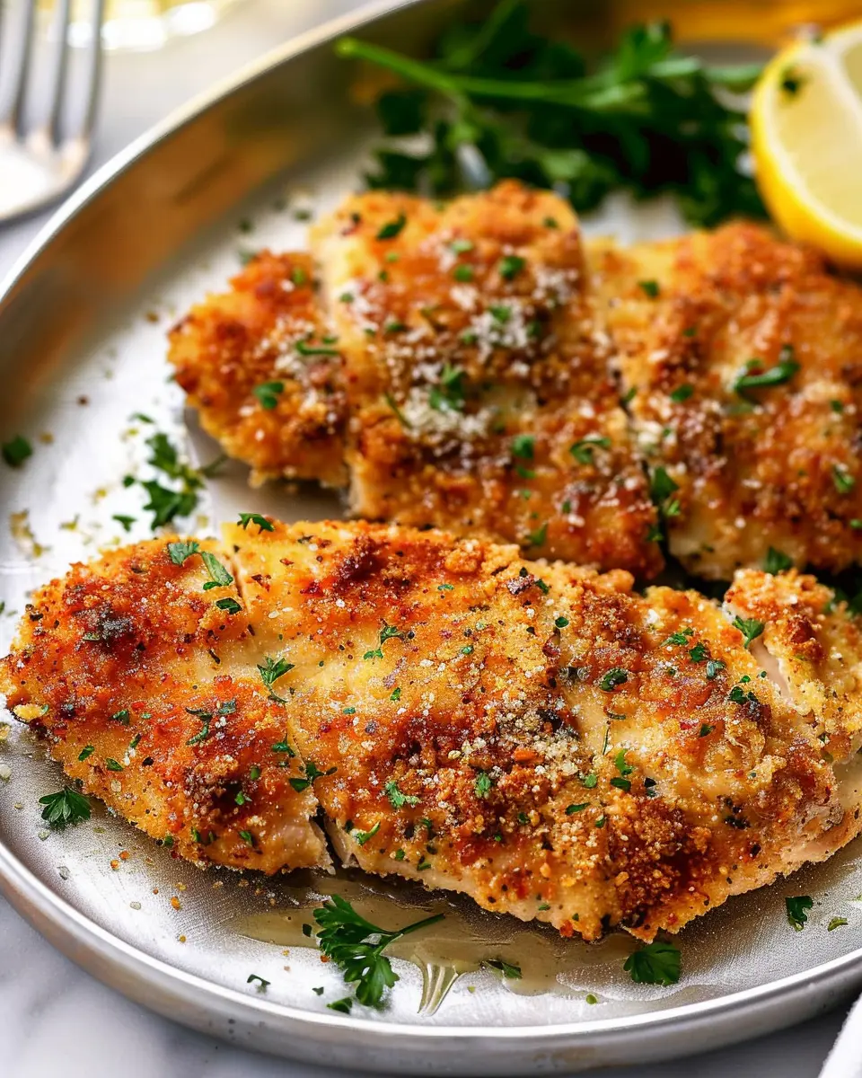In summary, Parmesan Crusted Chicken is a delightful dish that’s not only easy to prepare but also sure to impress anyone at your dinner table. Imagine serving a golden, crispy chicken breast, beautifully coated in a savory Parmesan crust, paired perfectly with a light salad or steamed vegetables.
