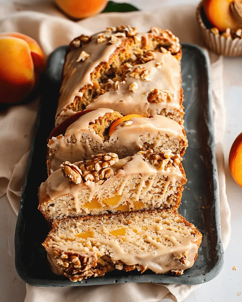 Enjoy the delightful taste of homemade Peach Bread, a perfect blend of juiciness and sweetness.