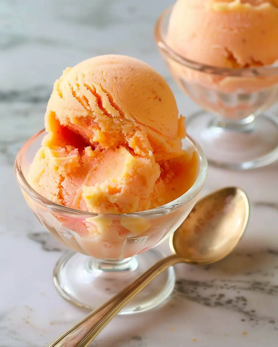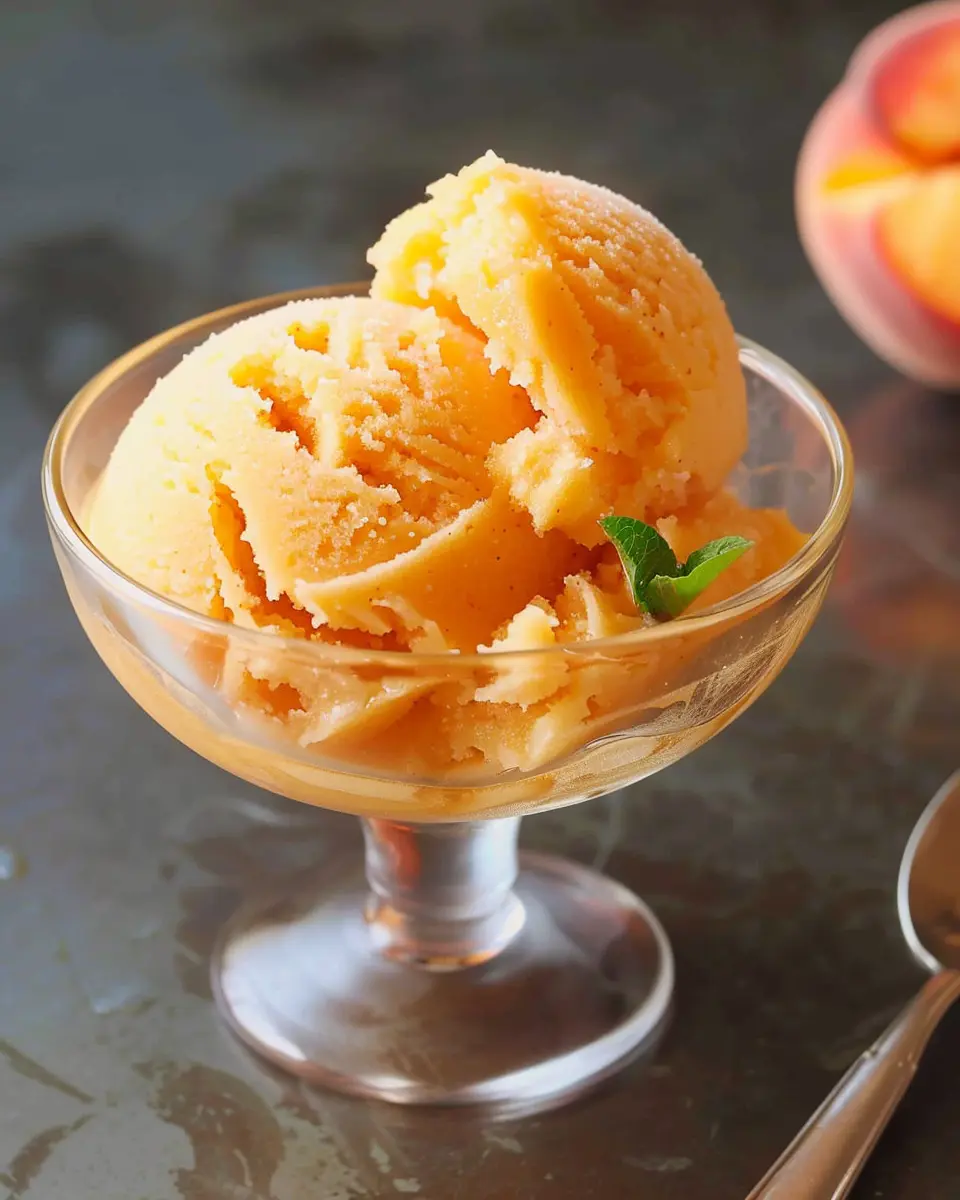 Indulge in the refreshing and delicious homemade peach sorbet, perfect for summer days!