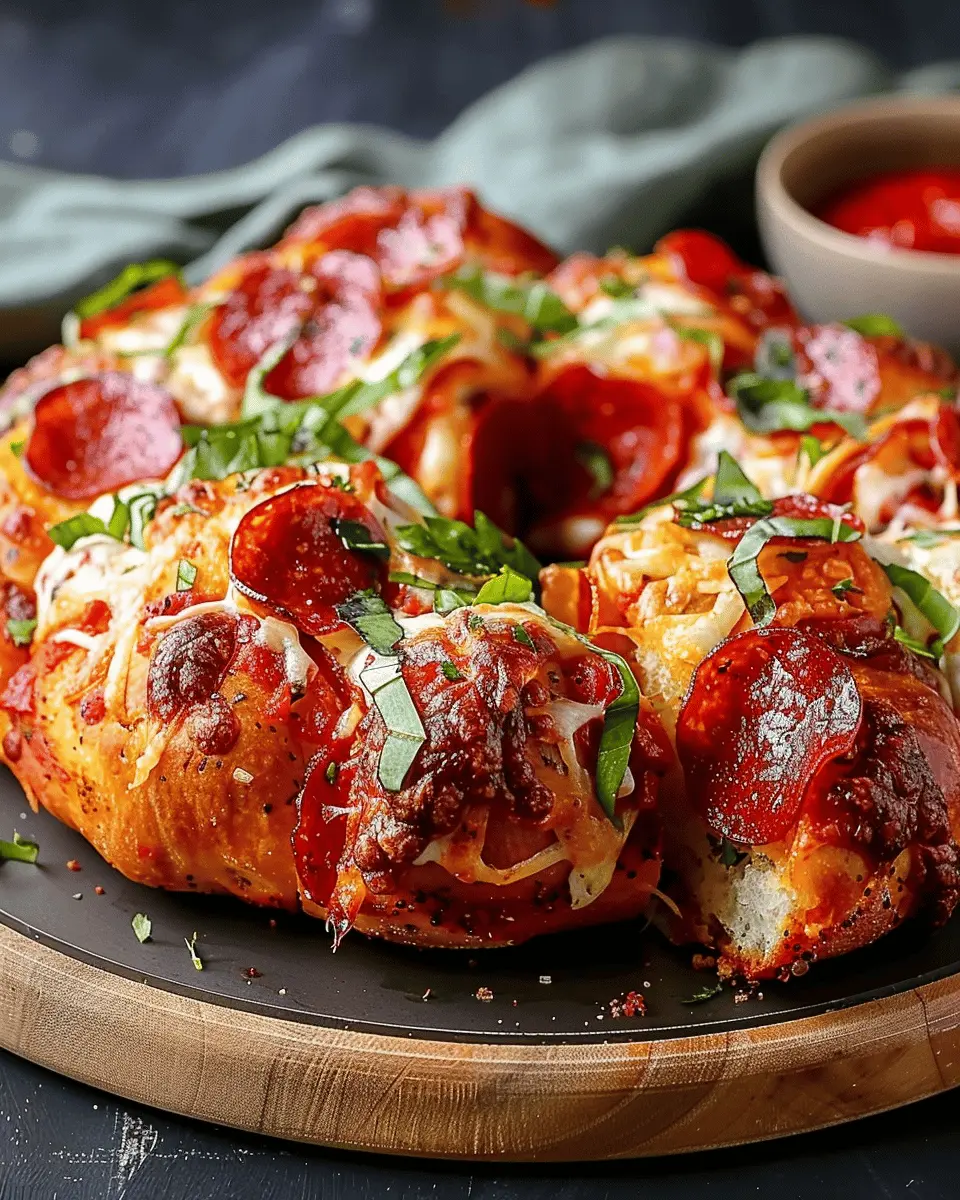Pull apart the pizza monkey bread with friends and family for a fun dining experience. This dish is perfect for game nights or casual get-togethers—everyone loves getting their hands a little messy!