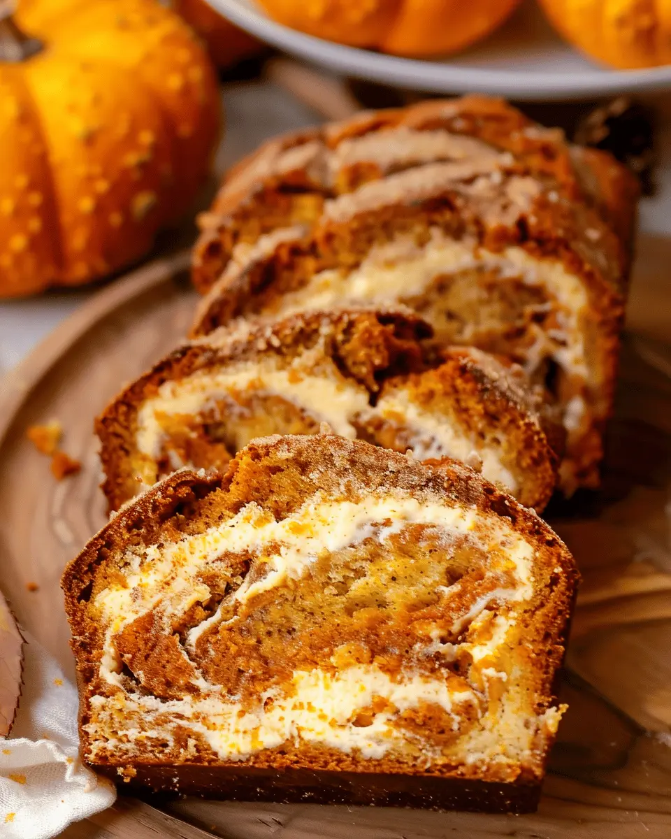Keywords: Pumpkin Cream Cheese Bread, Fall Treat, Cozy Baking