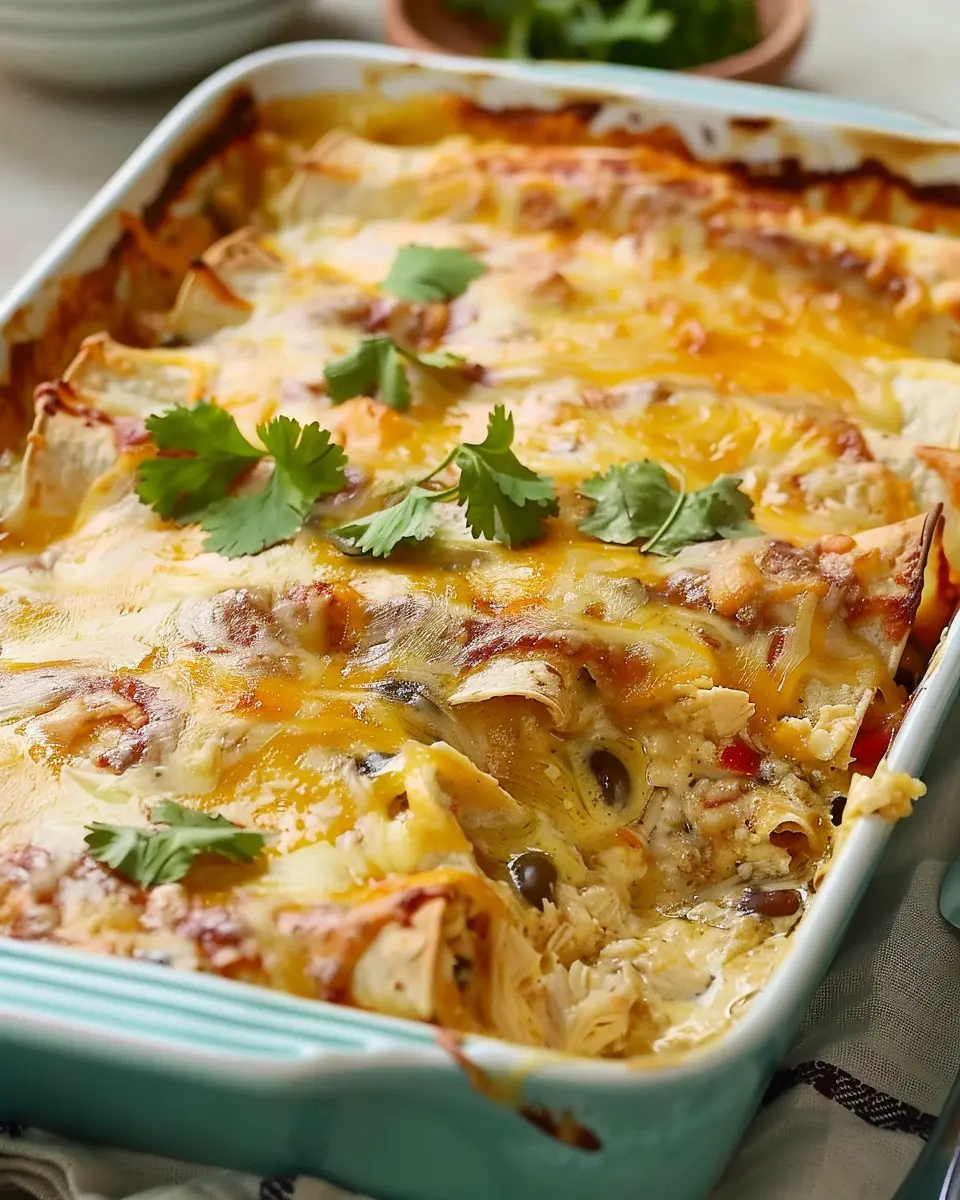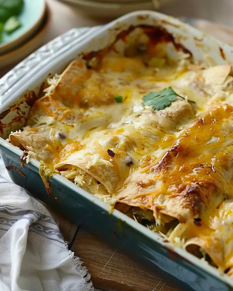 Wrapping up, the Quick and Easy Green Chile Chicken Enchilada Casserole is a delightful dish that perfectly marries convenience and flavor. It’s a meal that not only satisfies hunger but also fits seamlessly into a busy lifestyle, making it an ideal weeknight option. With its layers of tender chicken, zesty green chiles, and cheesy goodness, this casserole is sure to become a family favorite.