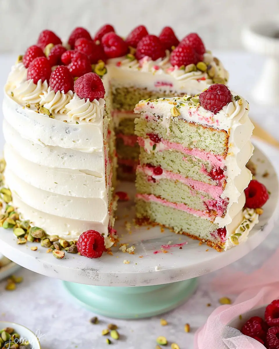 This Raspberry Pistachio Cake is a delightful fusion of flavors that will please your taste buds.