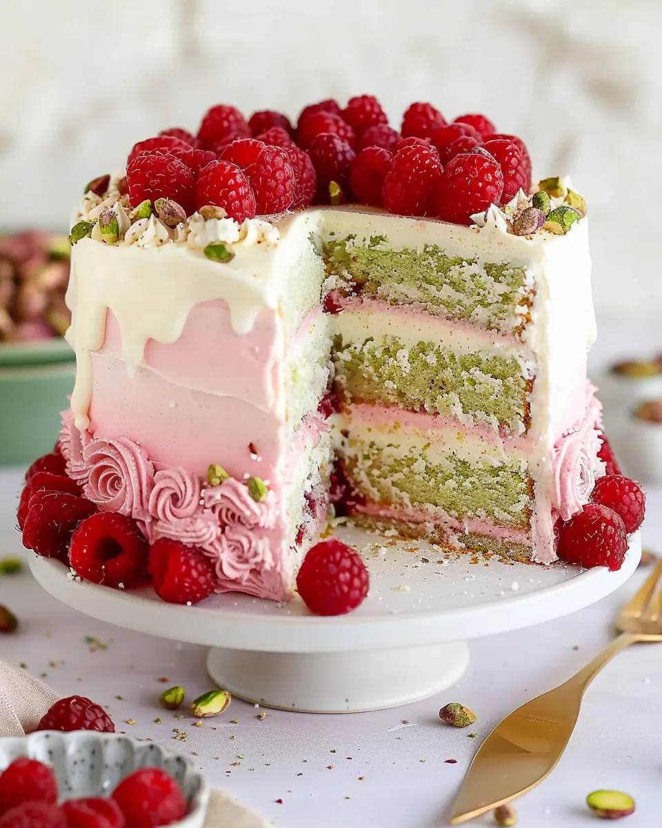 PrintRaspberry Pistachio Cake: The Best Indulgent Treat for Everyone