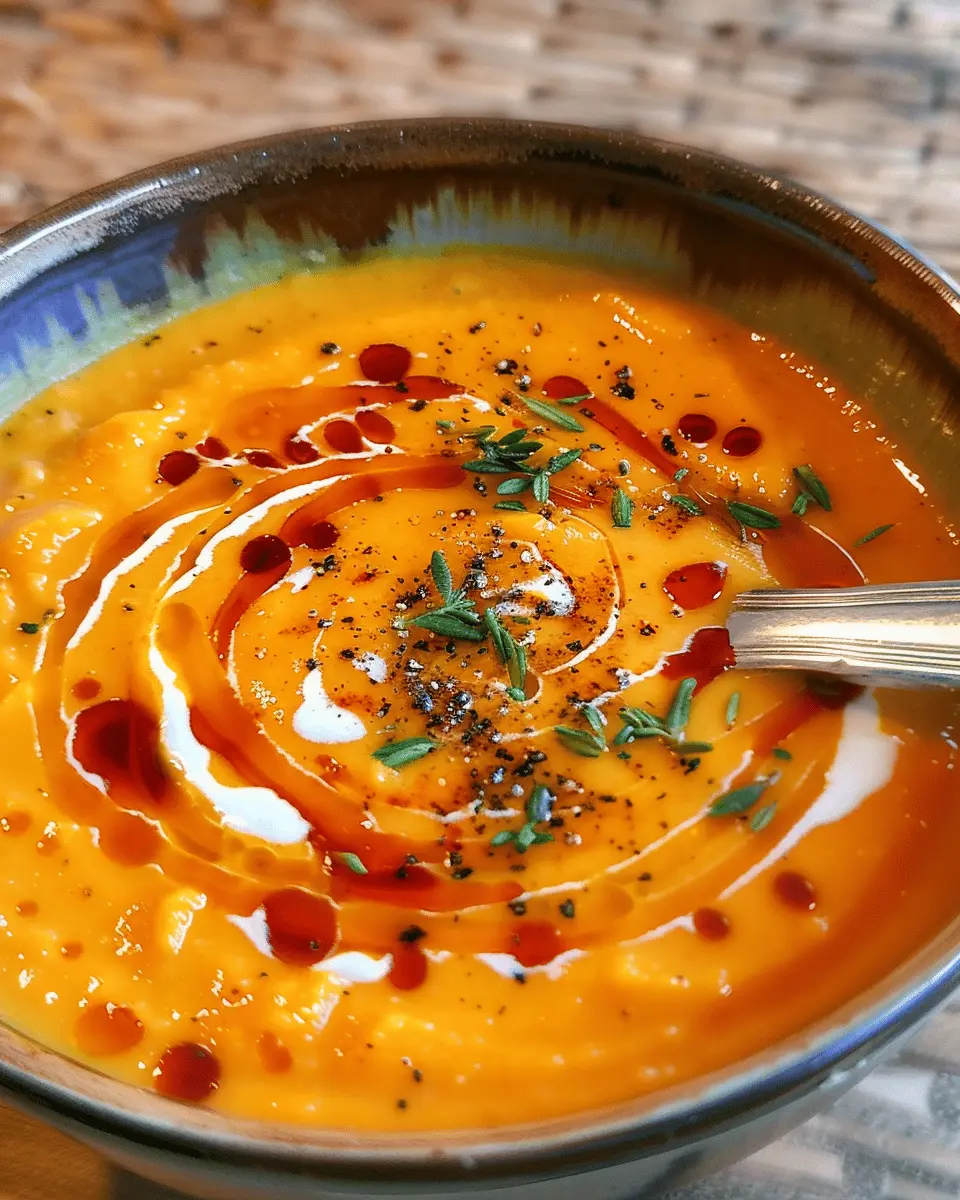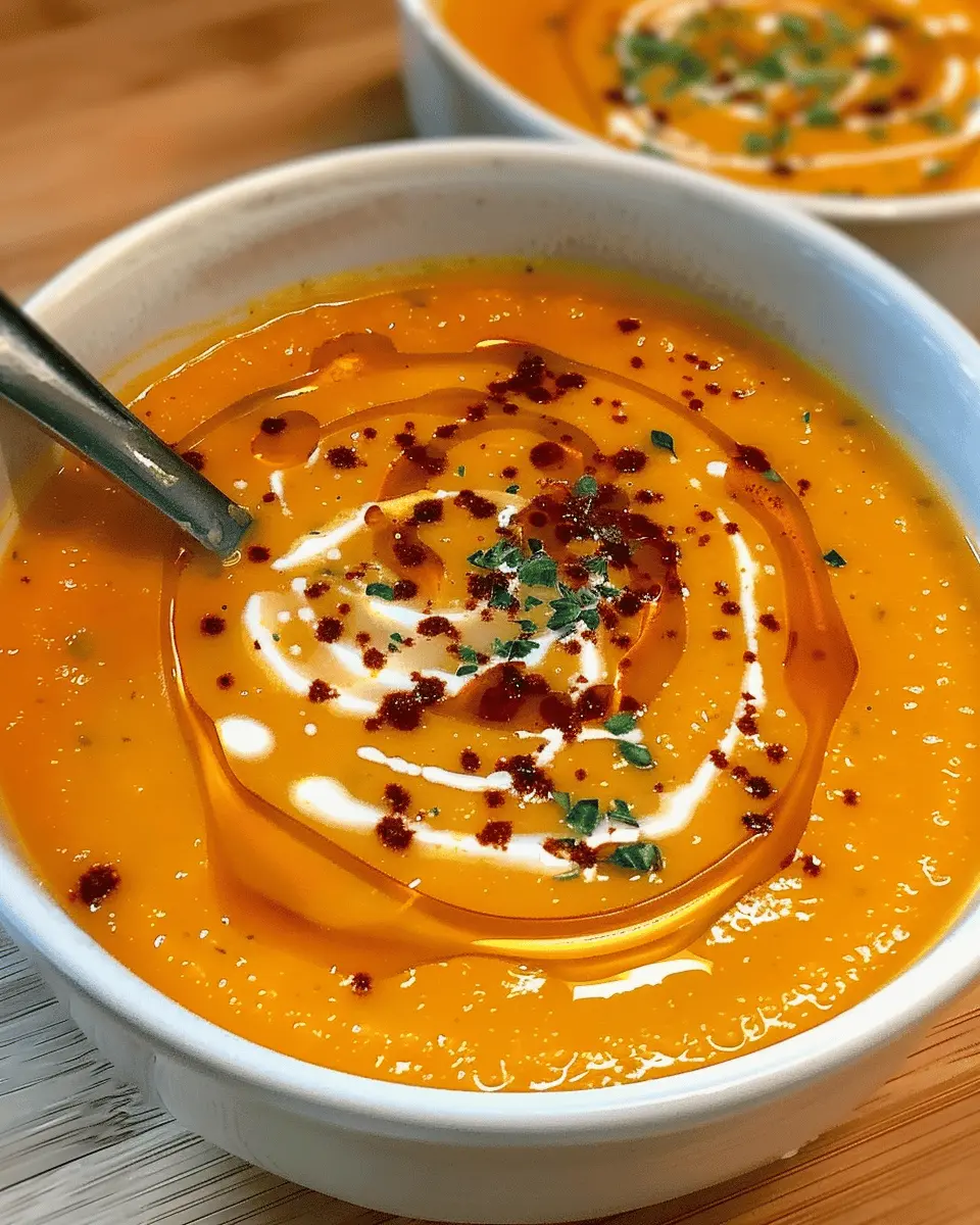Garnishing can elevate your soup from comforting to culinary masterpiece. Drizzle a splash of coconut cream or a swirl of olive oil over the top for a silky finish. Toss in roasted pumpkin seeds for an extra crunch, or sprinkle crumbled feta cheese for a touch of saltiness. For a fresh kick, add chopped chives or cilantro, which not only enhance the flavor but also make the dish visually appealing. Have fun with it! Your guests will appreciate the thoughtful presentation, making every bowl a reflection of your culinary creativity.