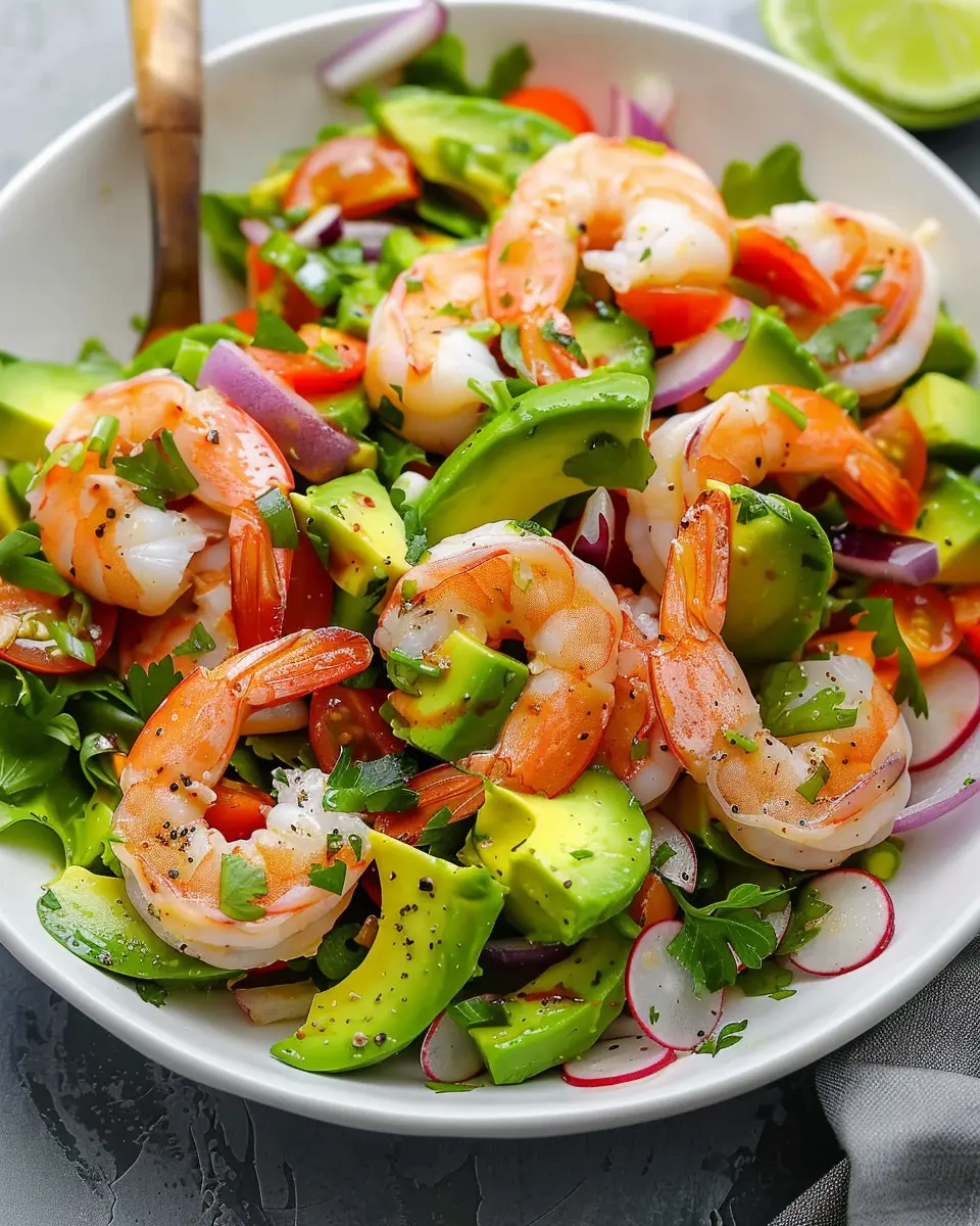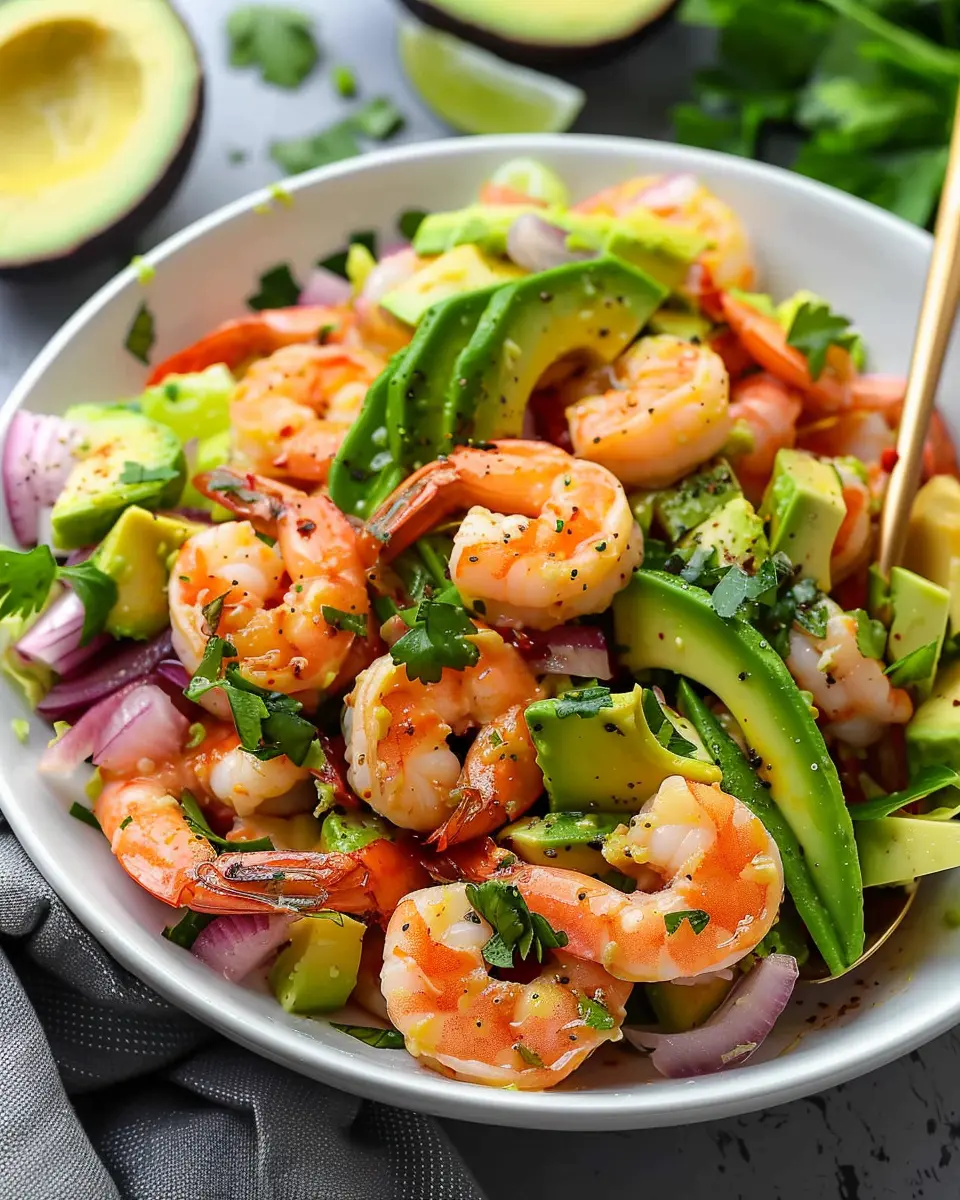 A refreshing and vibrant shrimp avocado salad that is perfect for summer gatherings and quick lunches.