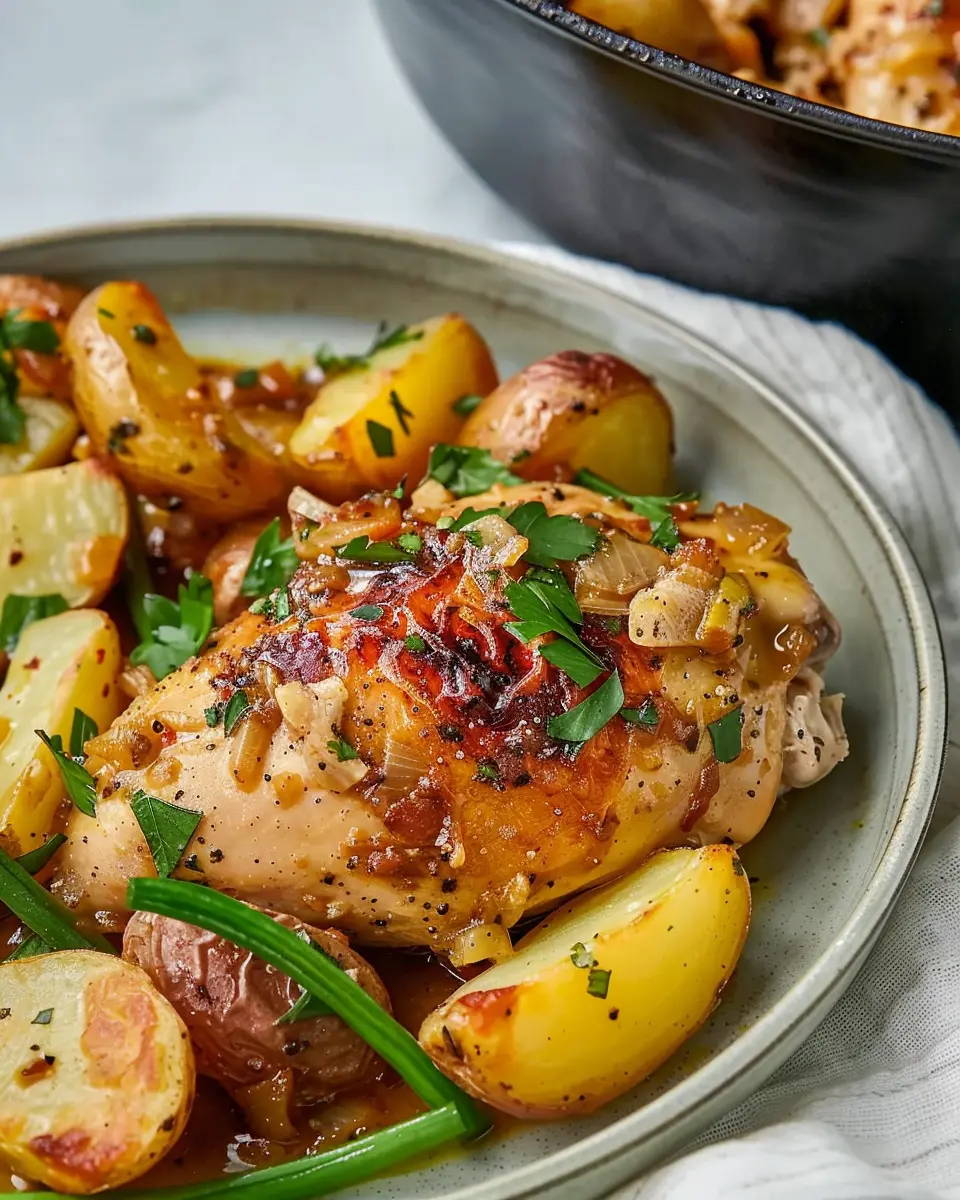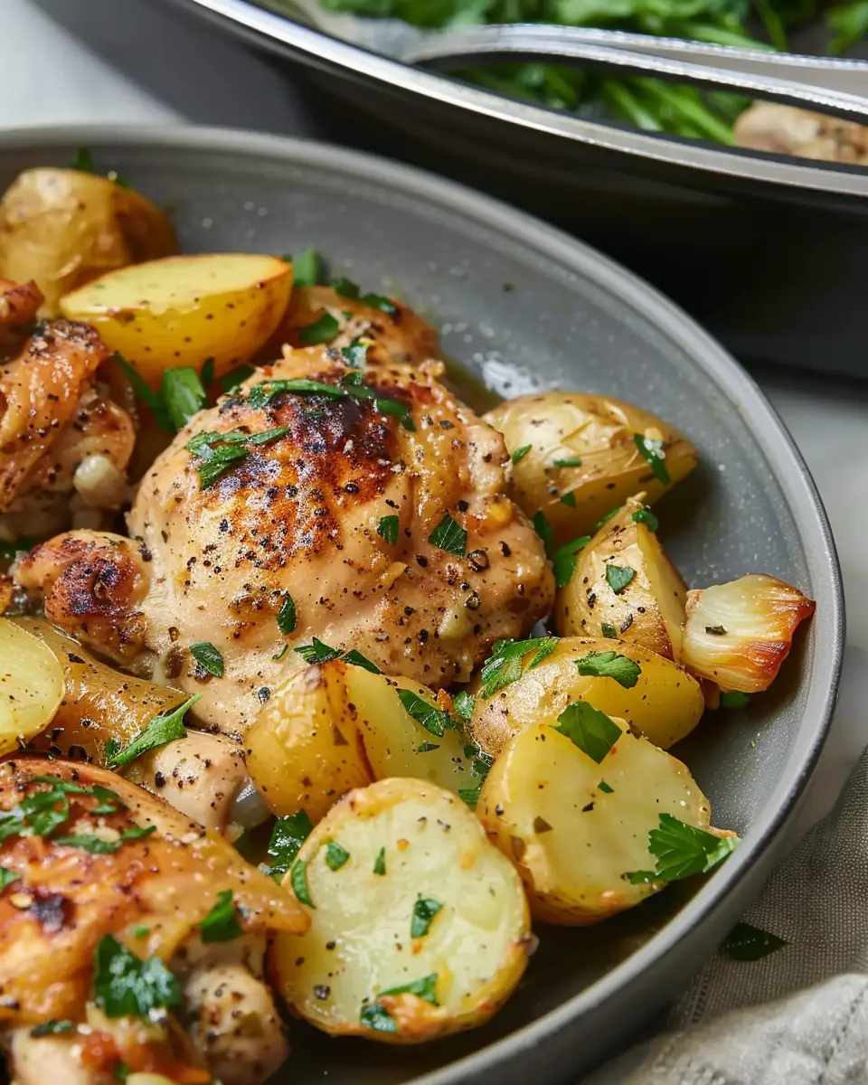- Pour the mixture over the chicken and potatoes.