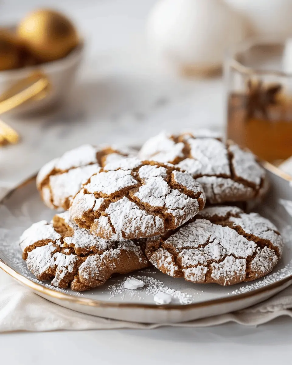 For that luscious crinkle look, roll your dough in powdered sugar just before baking—this not only adds sweetness but creates the signature cracks that make these soft and spiced gingerbread crinkle cookies so appealing.