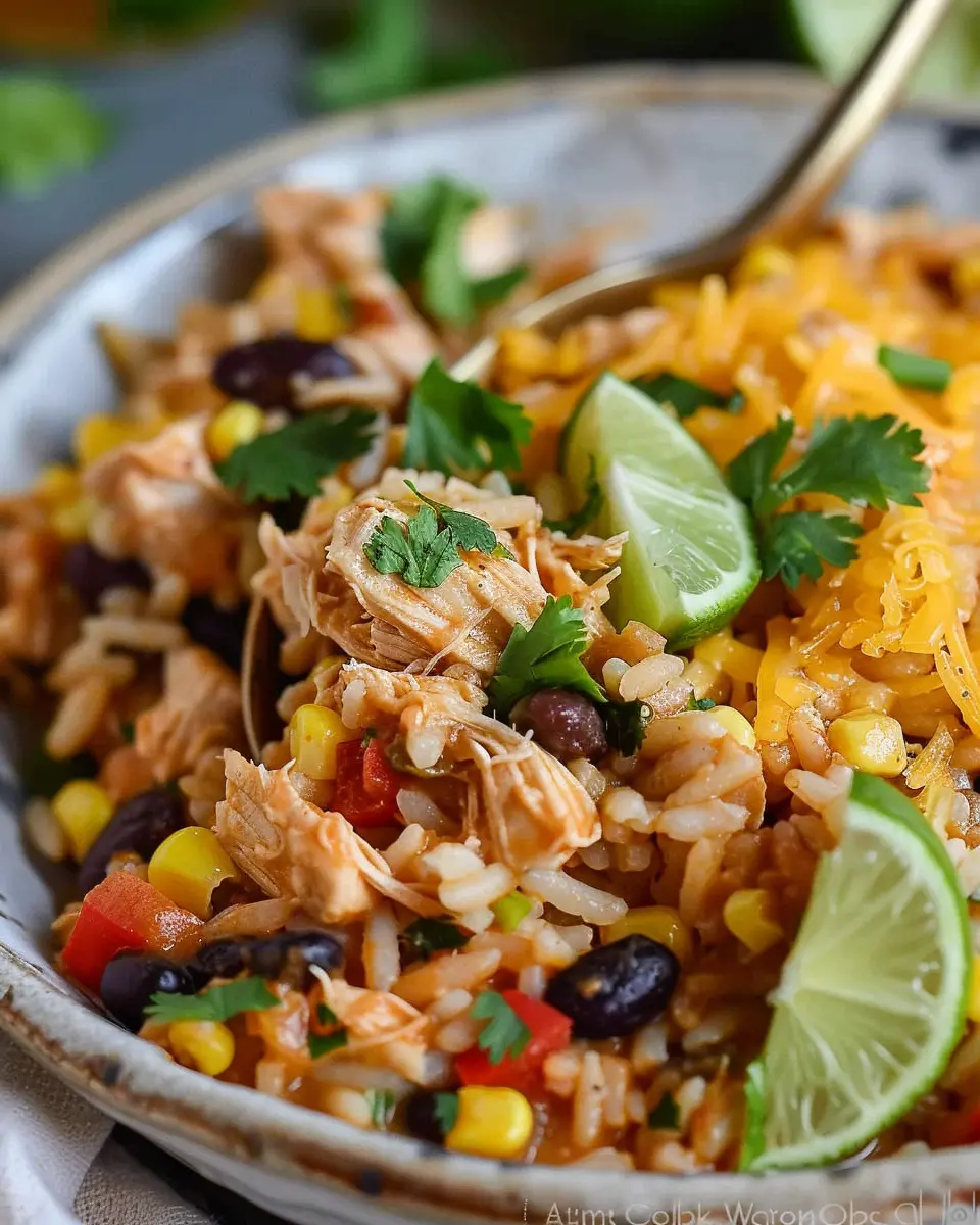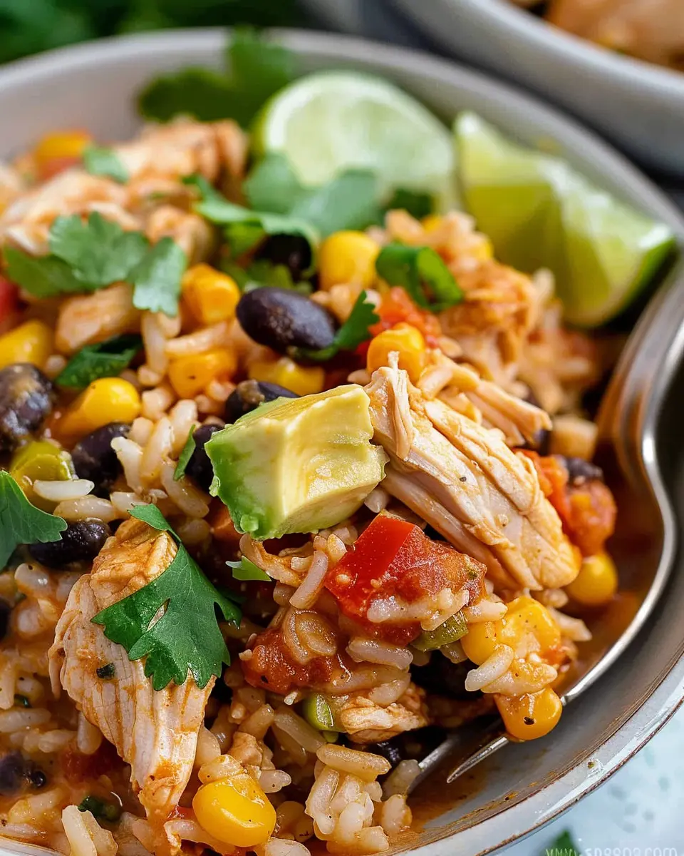 Finally, serve your Southwest Crock Pot Chicken and Rice with a squeeze of lime and your favorite toppings. The dish not only looks great but also warms the soul—a perfect finish to a long day. Enjoy this delightful and hassle-free meal that brings Southwest flavors to your table effortlessly!