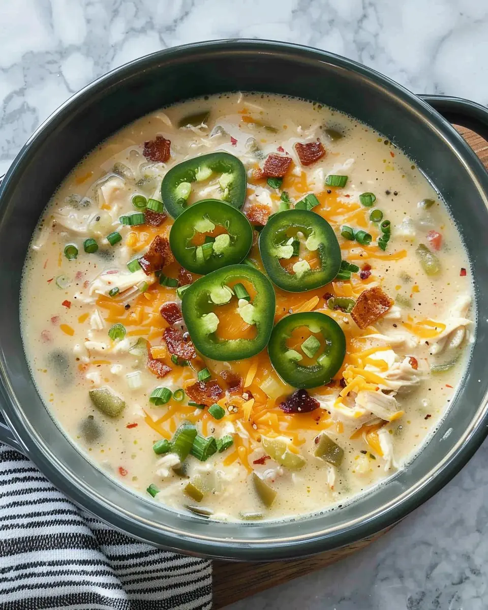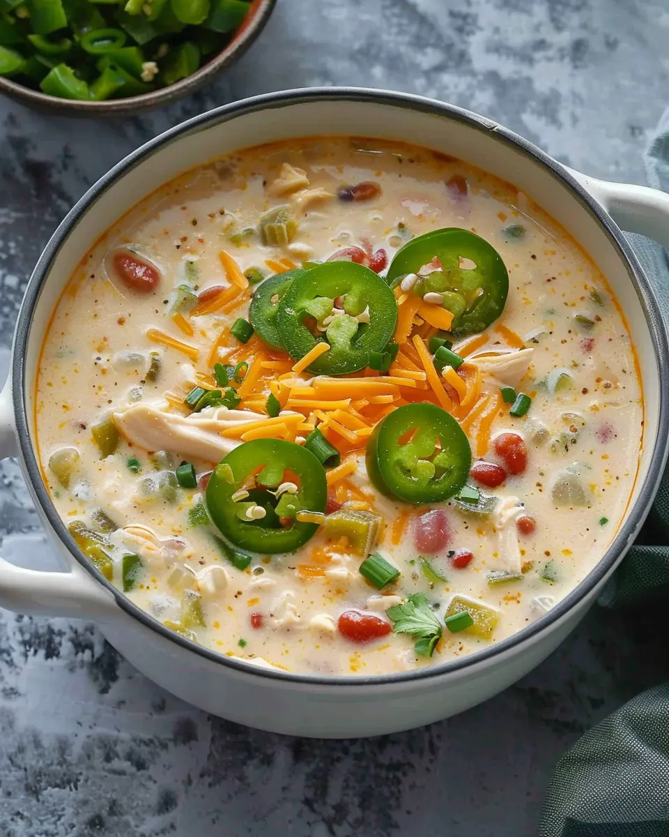 In conclusion, spicy jalapeno popper chicken soup is not just a delightful dish; it’s an experience. This creamy, comforting soup combines the zesty flavors of jalapeños with the savory goodness of chicken and spices, making it perfect for any occasion. Whether you’re cozying up on a chilly evening or planning a casual get-together, this recipe is sure to impress.